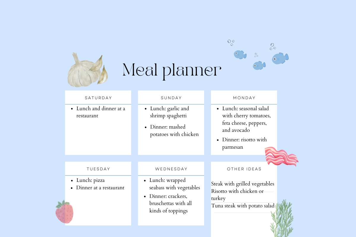 Now, it’s time for the meal planning and the 7-day menu on board while cooking a boat.