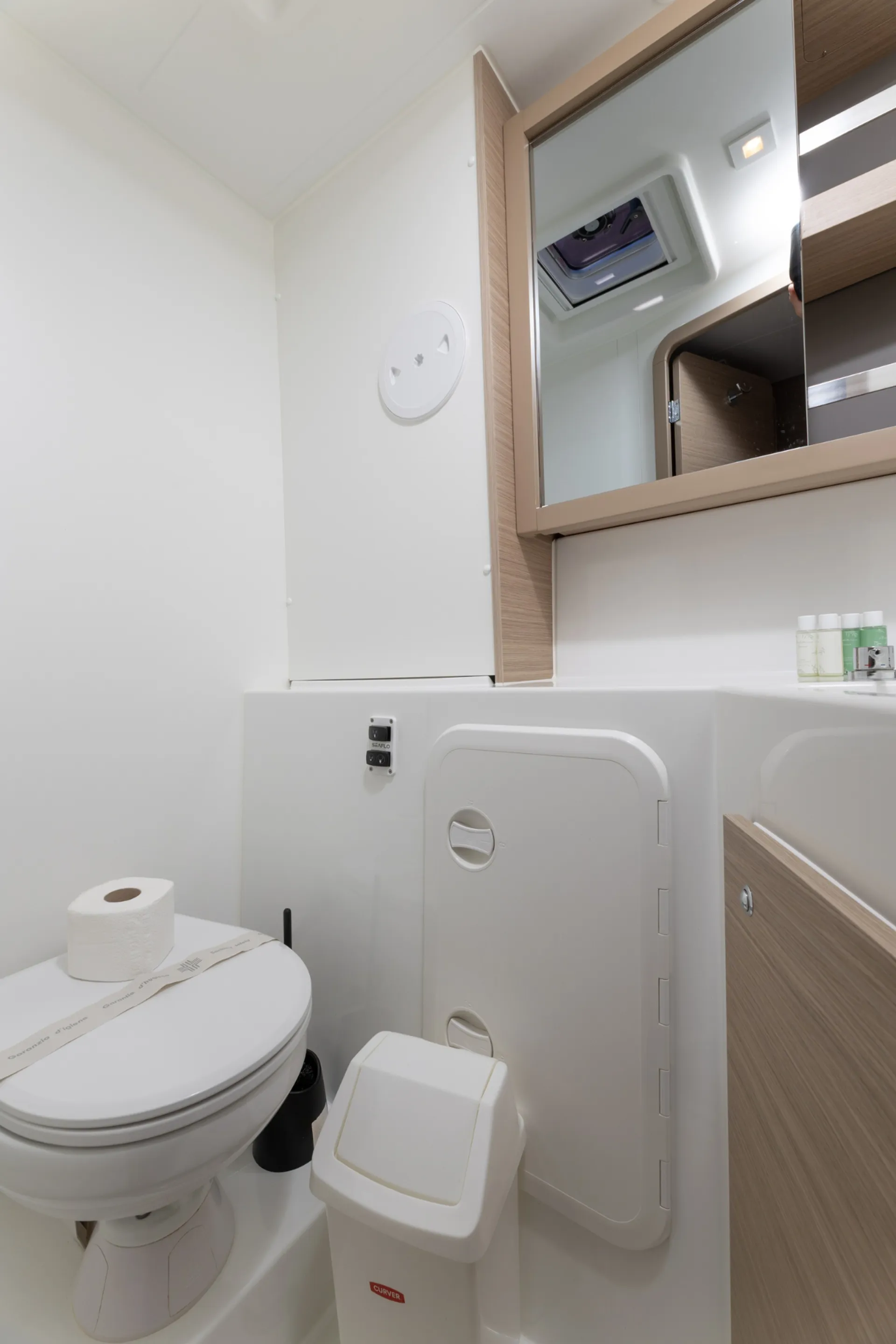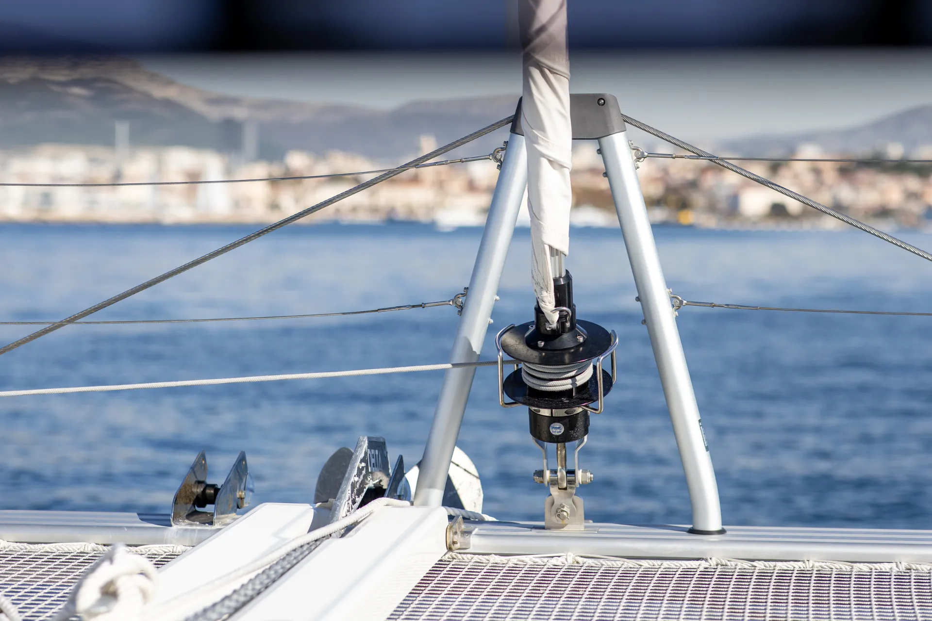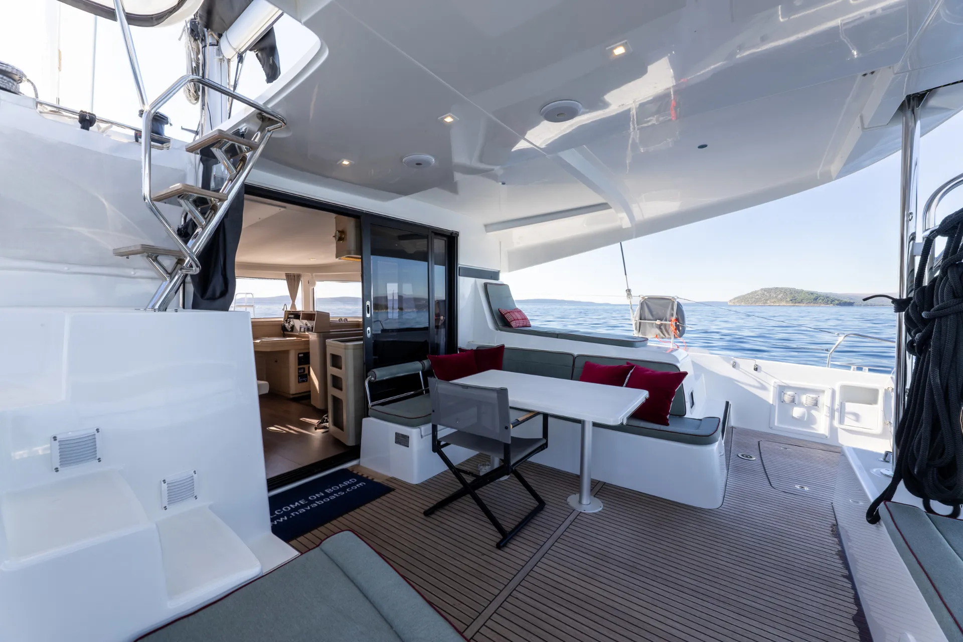 Equipped with watermaker, air conditioning, Wi-Fi, and heating, this catamaran guarantees a comfortable and connected experience at sea, regardless of the season. Other features cockpit fridge, inverter, tridata sensor and battery charger.