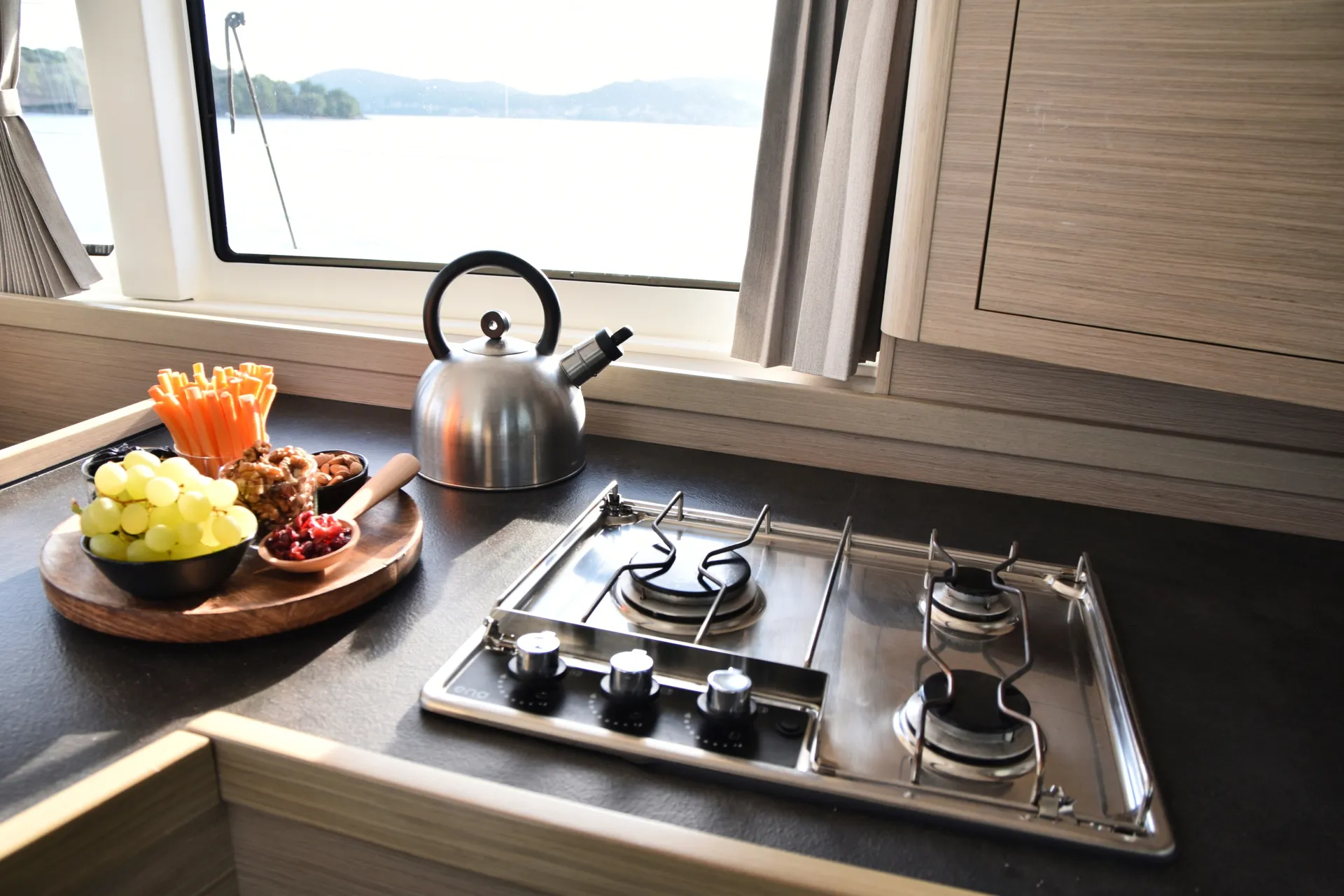 - GalleyFridgeGas stove with ovenIce makeradditional refrigerator in saloon