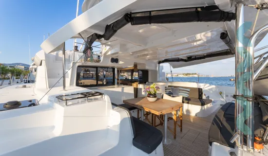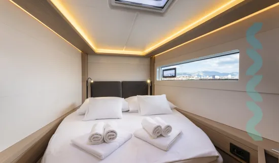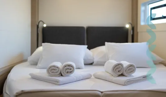 Lagoon 46 – Skyfall ist ein Katamaran, der bis zu 10 Gäste in 4 Doppelkabinen mit eigenem Badezimmer und 2 zusätzliche Gäste auf dem konvertiblen Lounge im Salon. Der Katamaran bietet auch Unterkunft für 2 Besatzungsmitglieder in 2 kleinen Kabinen im Bug.