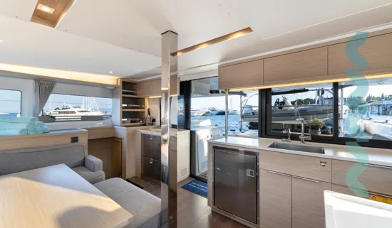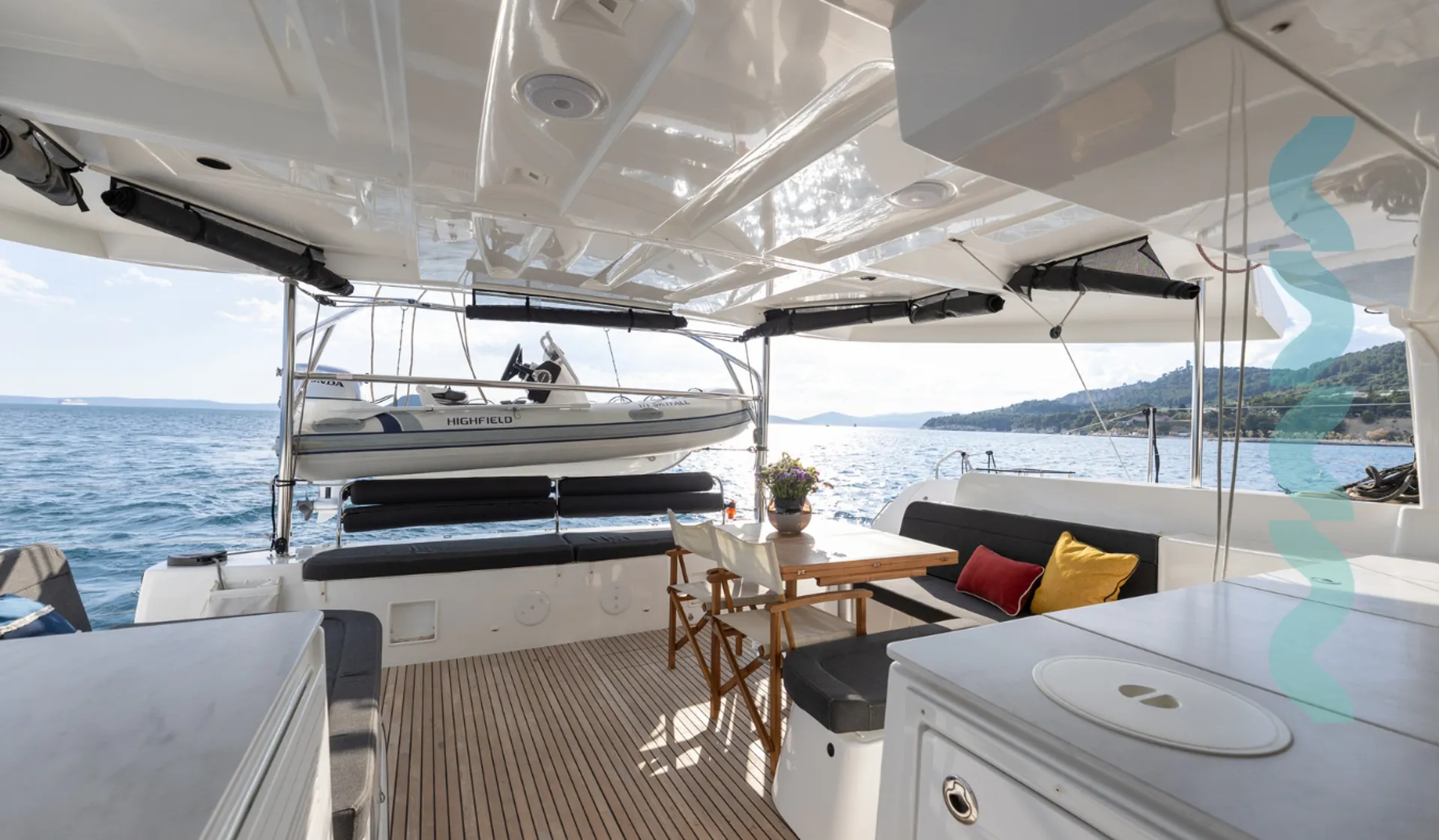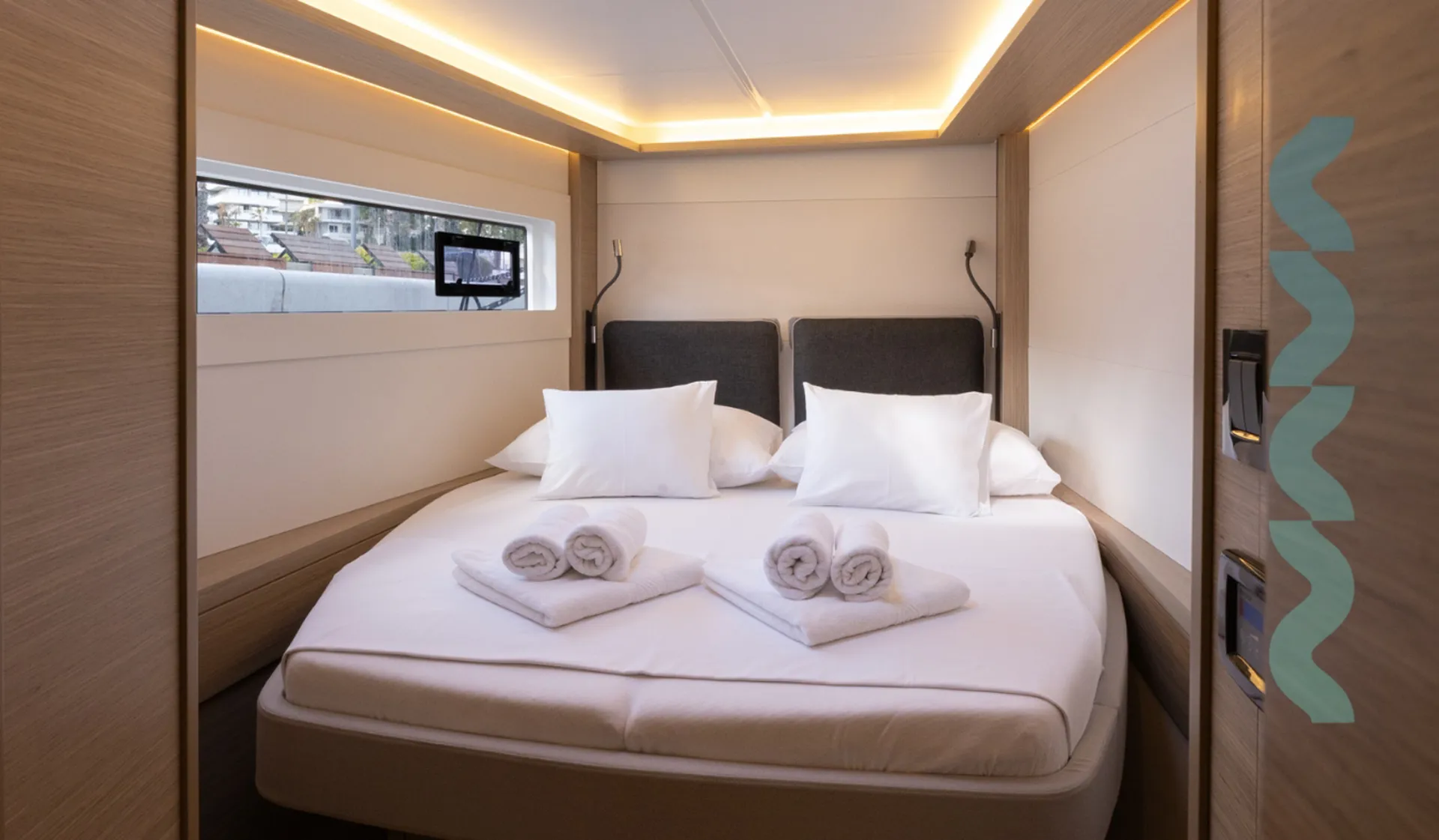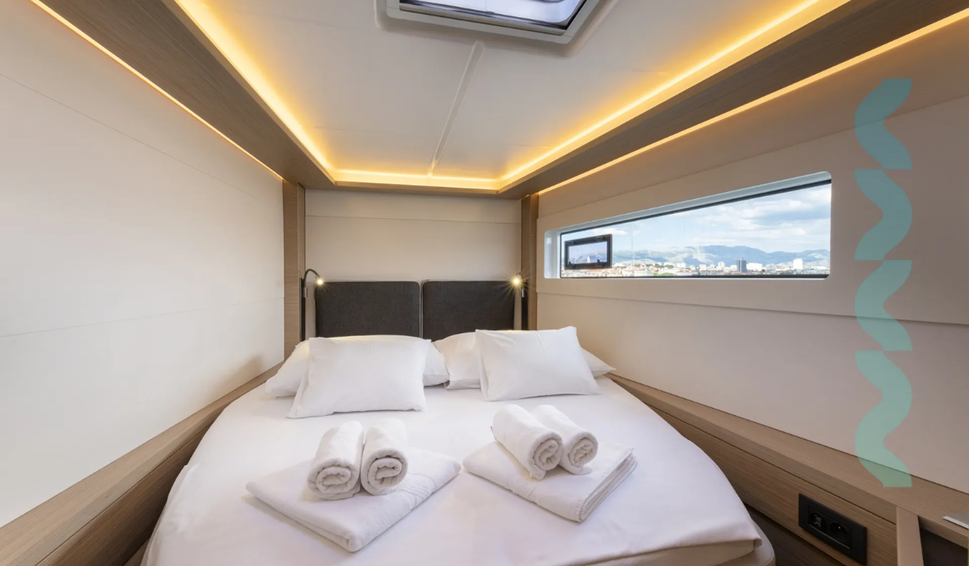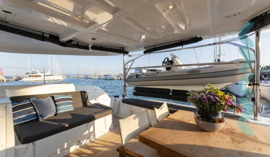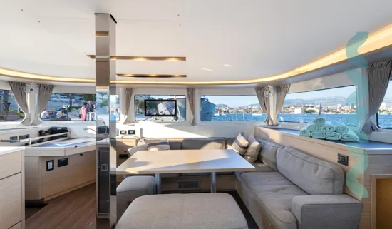 Die Ausstattung besteht aus Autopilot, TV, WLAN, Lautsprechern, Cockpit-Kühlschrank und Cockpit-Dusche, Eismaschine, Kaffeemaschine, Heizung und mehr. Klimaanlage sowie Ventilatoren in Kabinen und Salon machen Ihren Aufenthalt an Bord angenehm.
