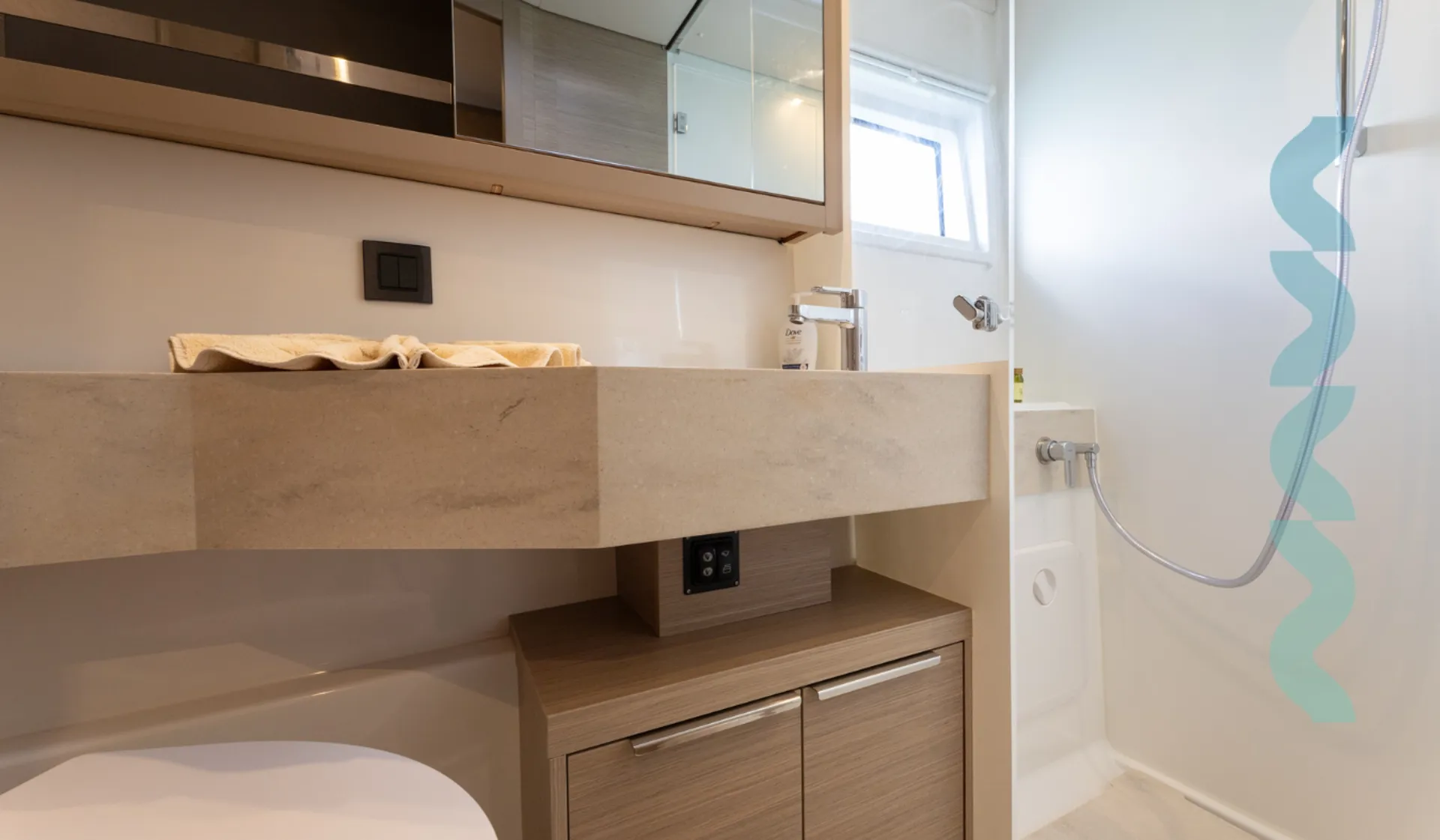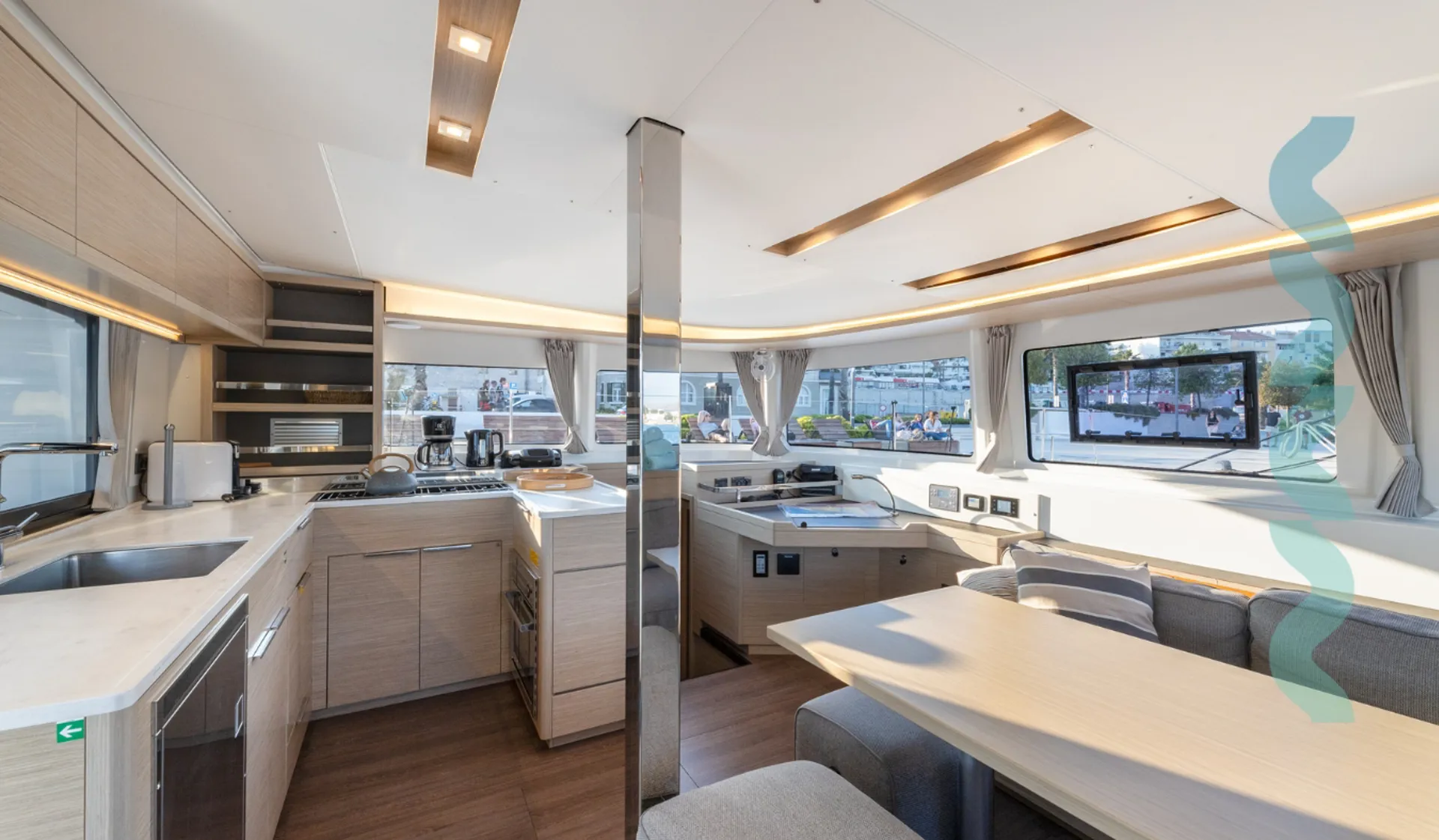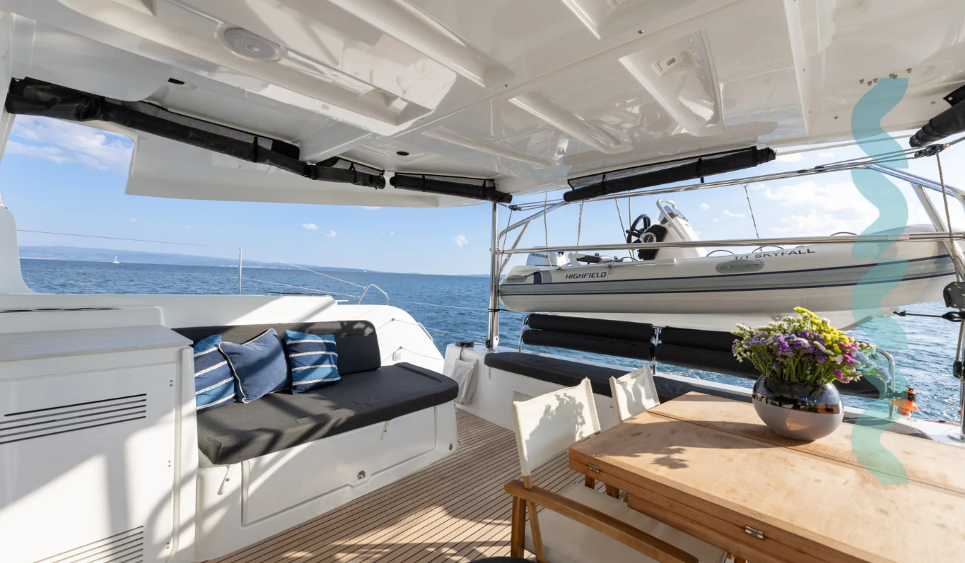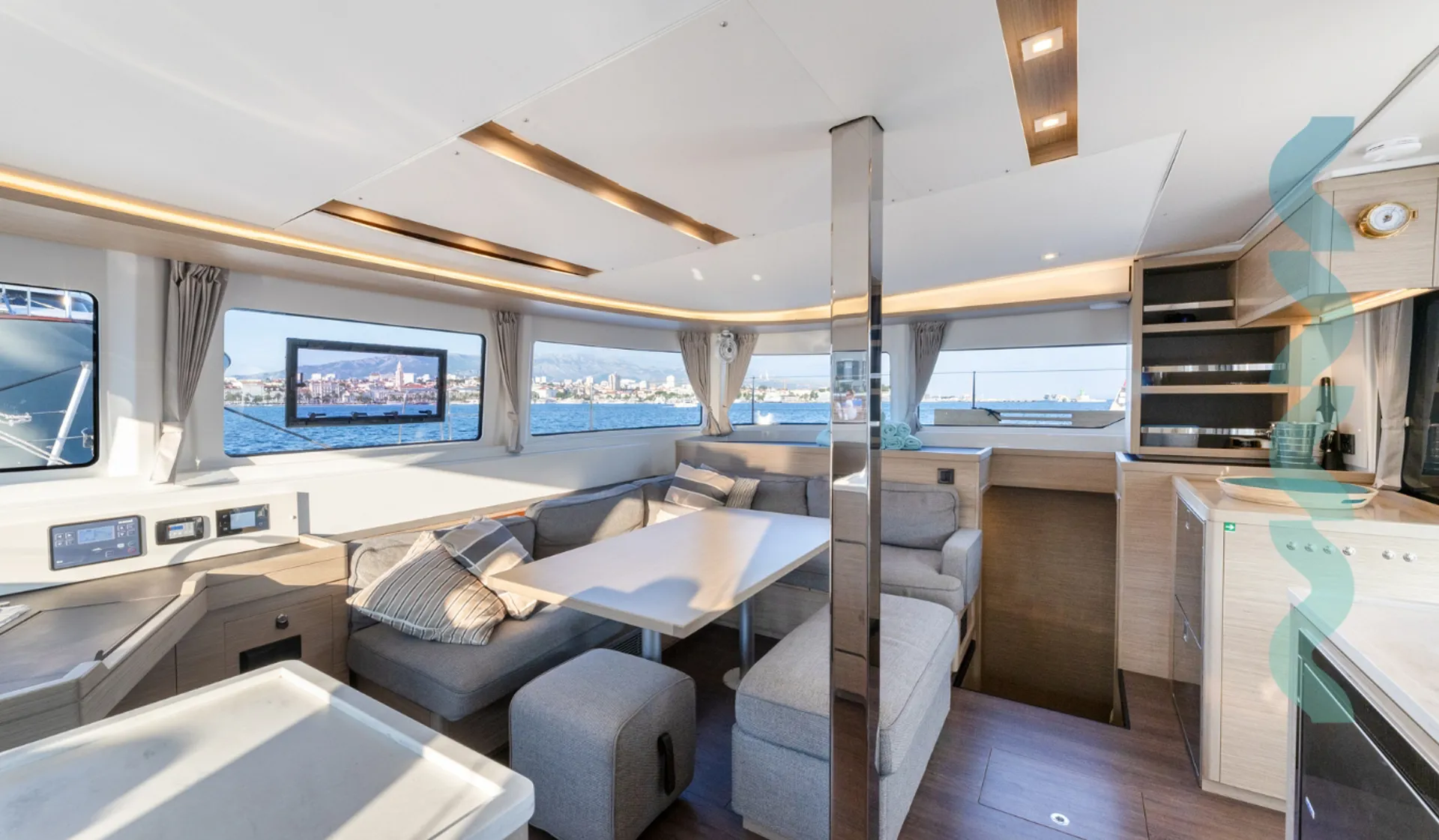 Die Ausstattung besteht aus Autopilot, TV, WLAN, Lautsprechern, Cockpit-Kühlschrank und Cockpit-Dusche, Eismaschine, Kaffeemaschine, Heizung und mehr. Klimaanlage sowie Ventilatoren in Kabinen und Salon machen Ihren Aufenthalt an Bord angenehm.