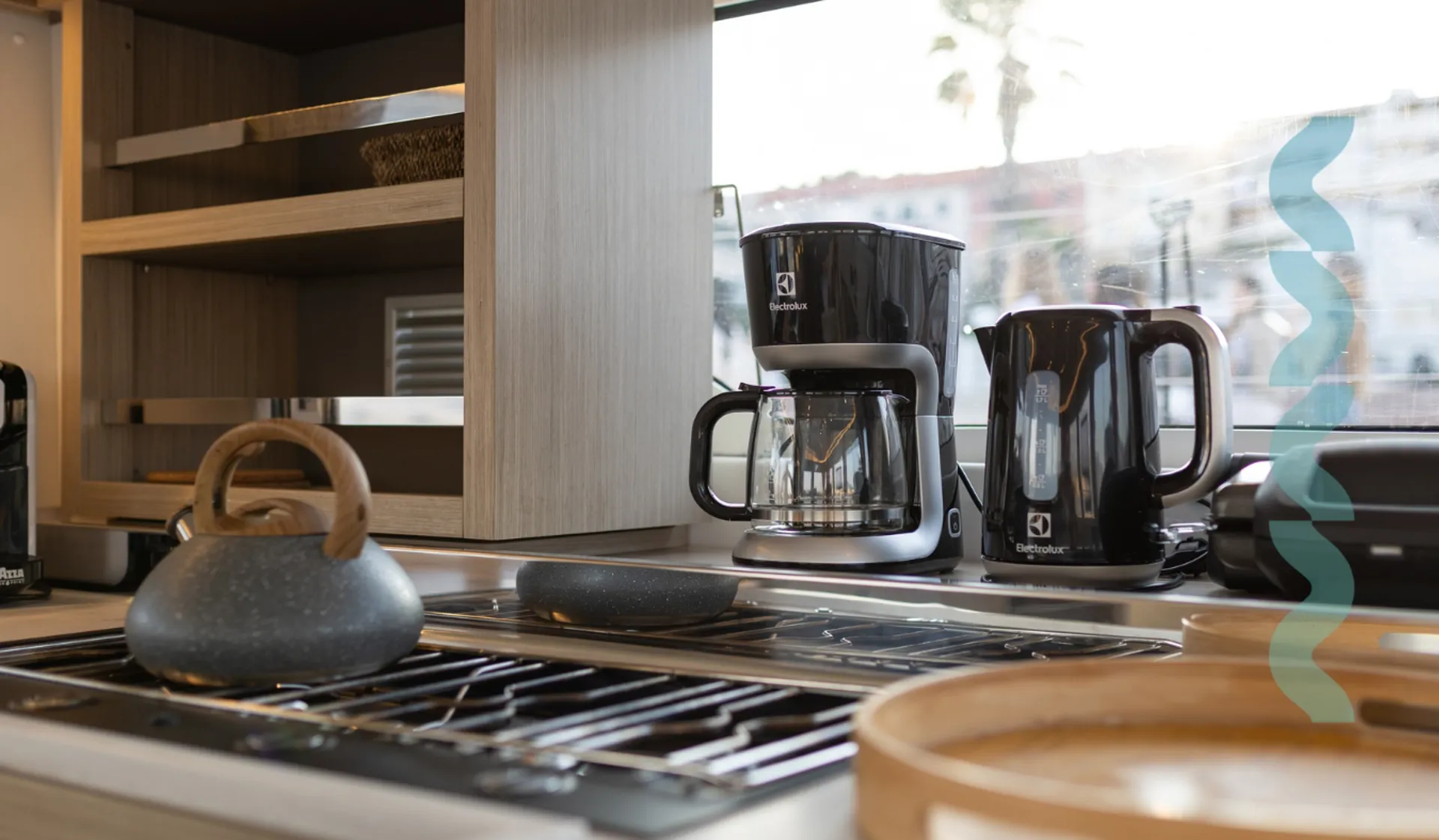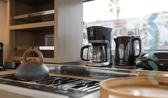 - PantryKaffeemaschineGasherdDoppelkoje im Salon
