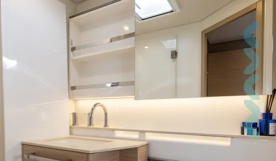 Dieser Katamaran kombiniert modernste Systeme und Unterhaltungselektronik, um Ihr Chartererlebnis zu perfektionieren. Er ist ausgestattet mit einem Generator, einem Wechselrichter mit Batterieladegerät, einer Wasseraufbereitungsanlage (Watermaker), einem Bugstrahlruder sowie vollständiger Navigationsausrüstung inklusive GPS-Plotter, AIS 700 Transceiver und Autopilot. Für Unterhaltung sorgen ein Fusion Apollo MS-RA670 Audiosystem mit Lautsprechern, ein TV und eine umfangreiche Auswahl an Wassersportausrüstung.