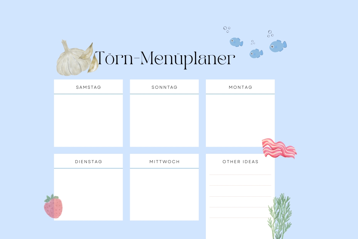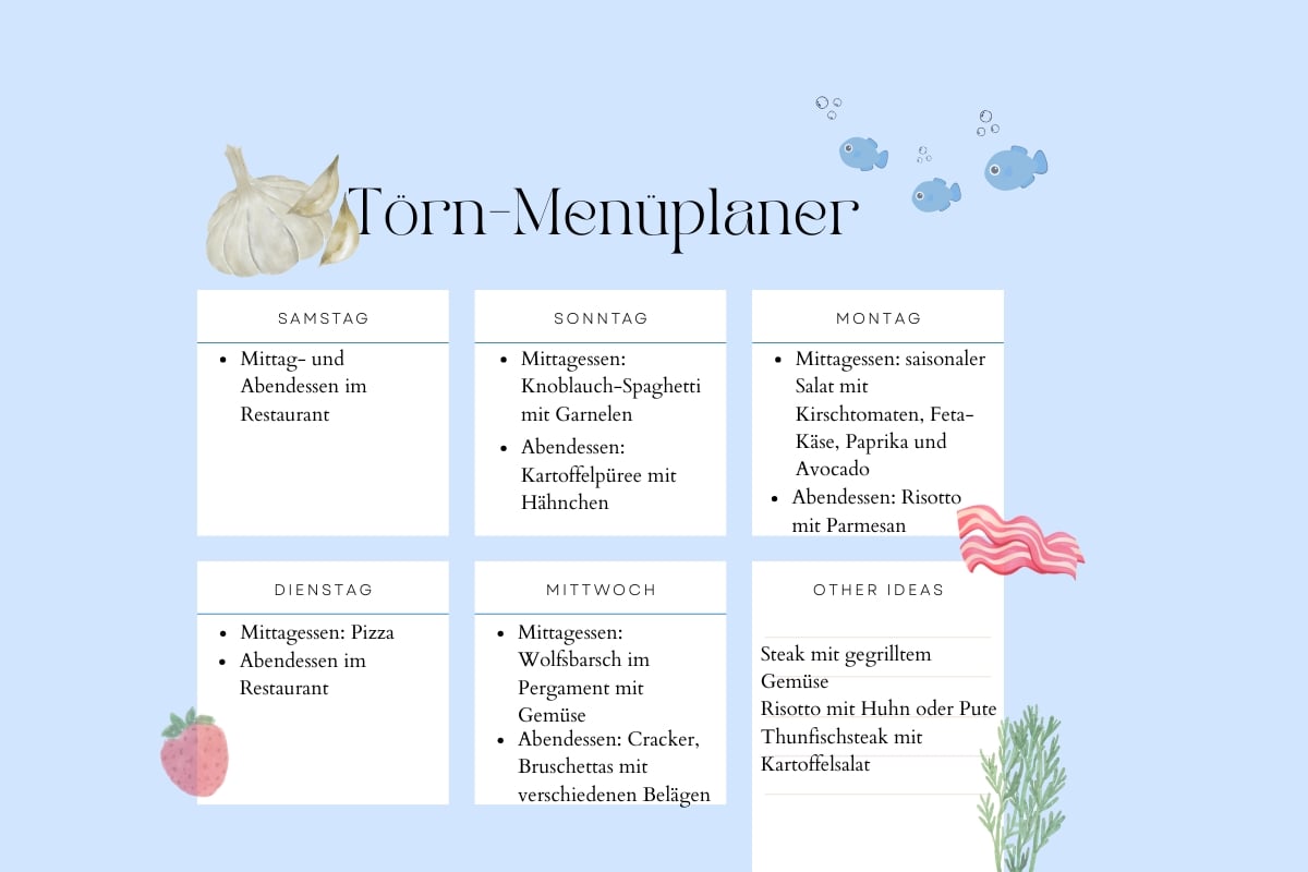 Jetzt kann die Essensplanung starten – los geht’s mit dem 7-Tage-Menü fürs Kochen an Bord.