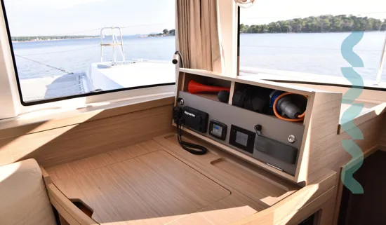 - Sigurnosna opremaAuxiliary anchorFire extinguisherCalibrated anchor chainFirst aid kitLiferaftDistress flaresLife jacketsNautical charts and guide