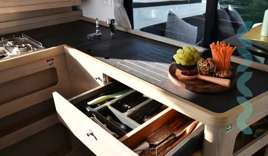 - Brodska kuhinjaFridgeGas stove with ovenIce makeradditional refrigerator in saloon