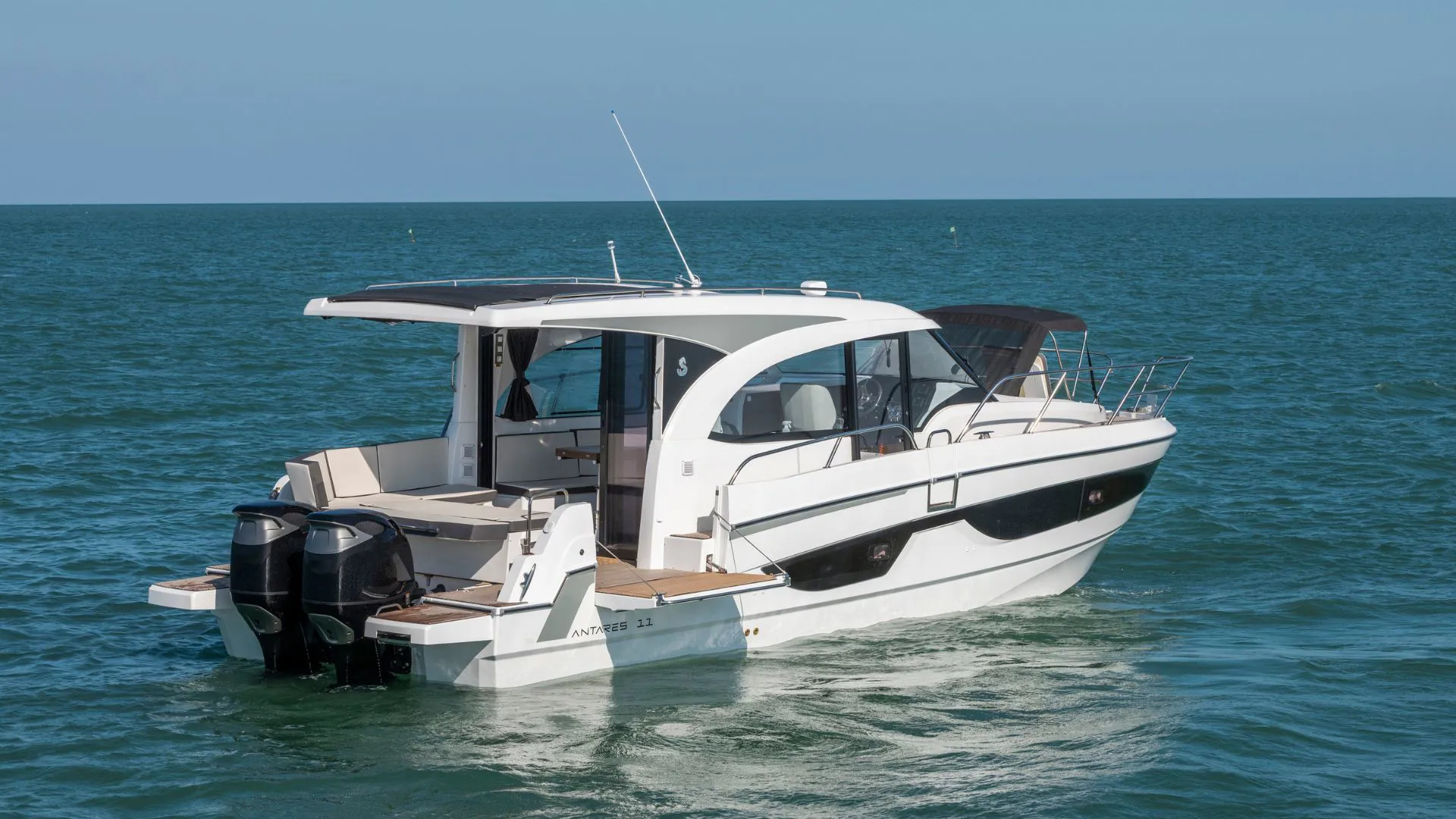 Iskusite svijet udobne i sigurne plovidbe s modelom Antares 11 OB, modernim krstašem s vanbrodskim motorima koji savršeno spaja performanse, komfor i pametno iskorišten prostor. Pokreću ga dva Suzuki motora od 300 KS s joystick upravljanjem, brod pruža izuzetnu upravljivost i jednostavno manevriranje, bilo pri pristajanju u marini ili tijekom istraživanja obala.