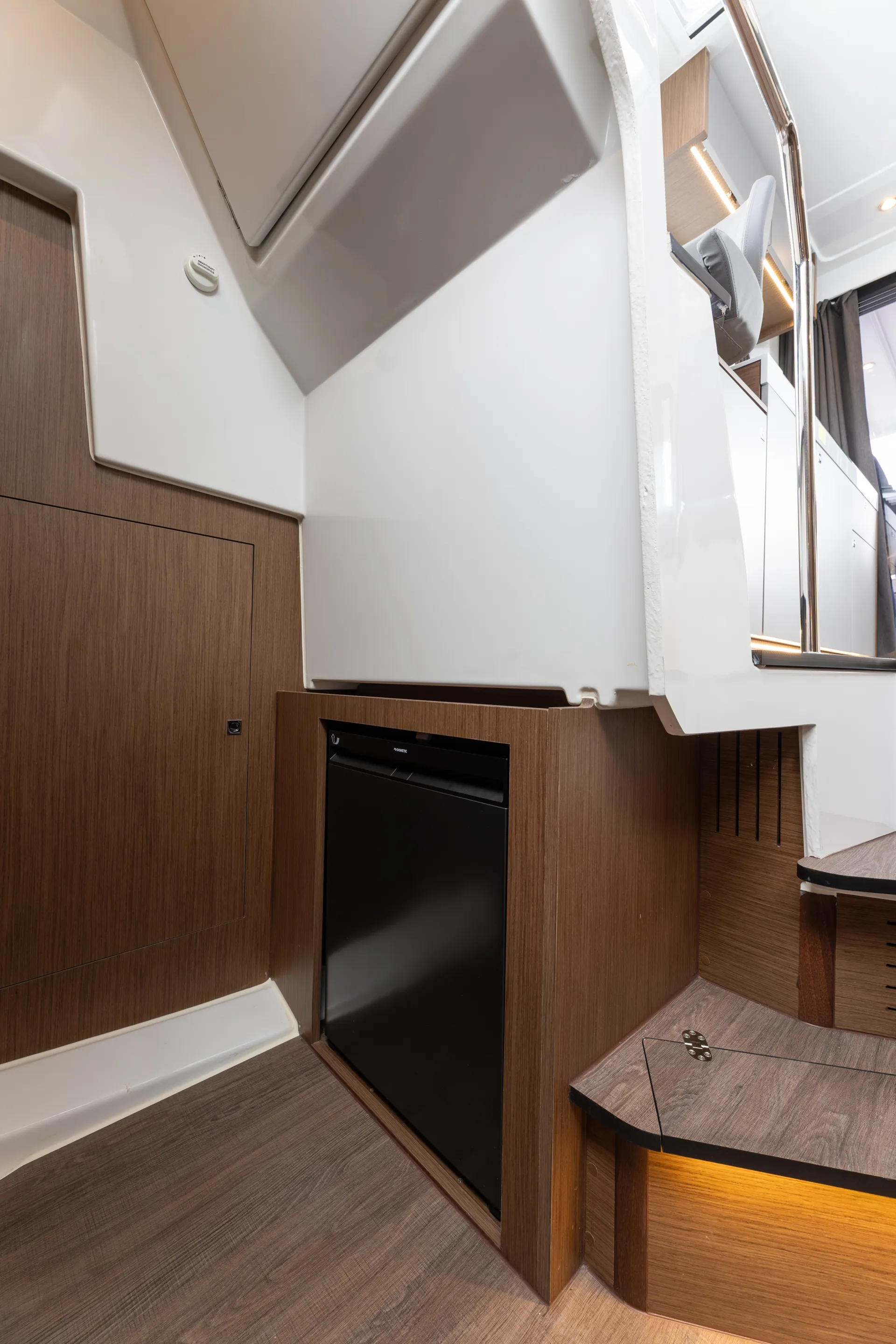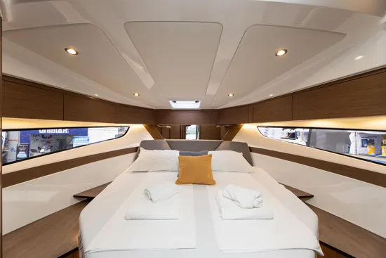 Brod je opremljen vrhunskom opremom, uključujući Comfort Trim paket, napredni elektronički paket, automatske trim tabove, joystick upravljanje i još mnogo toga.