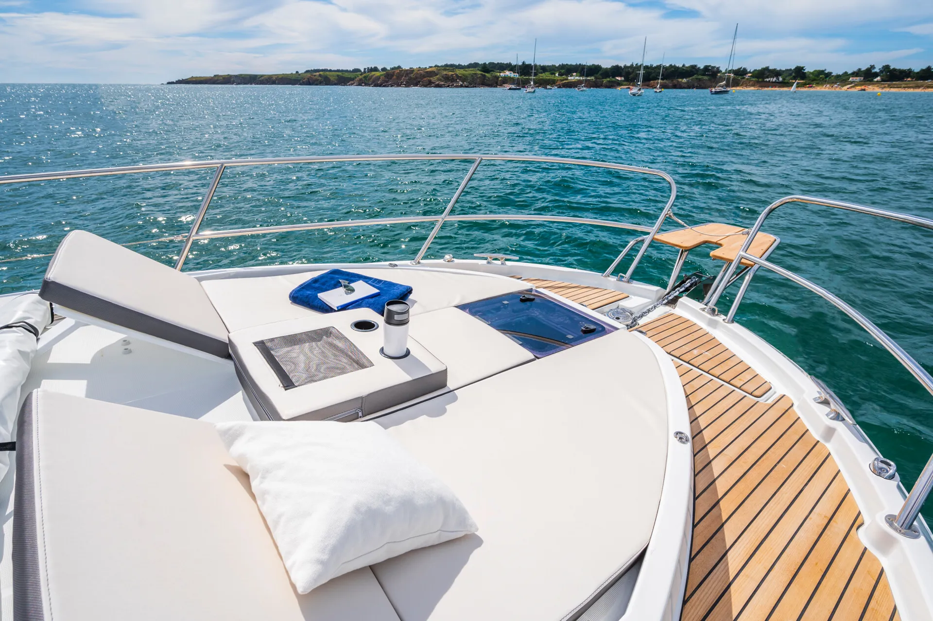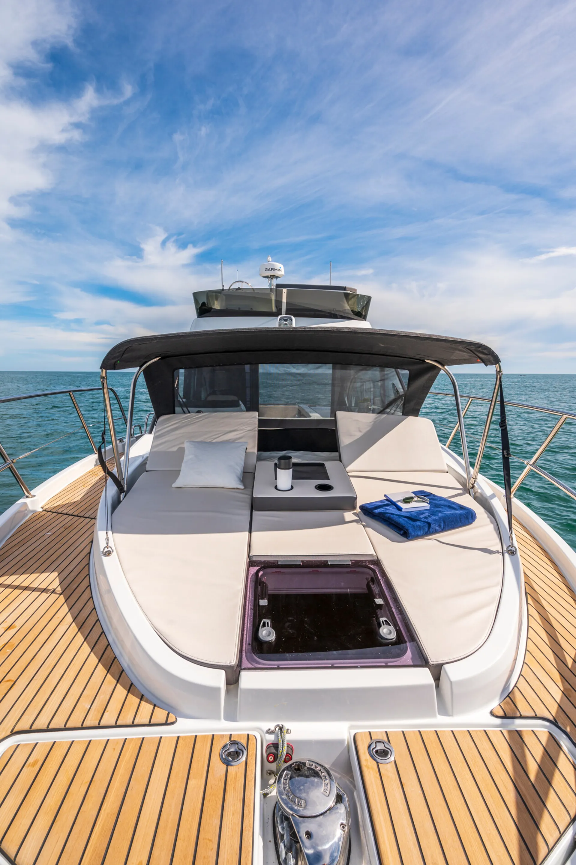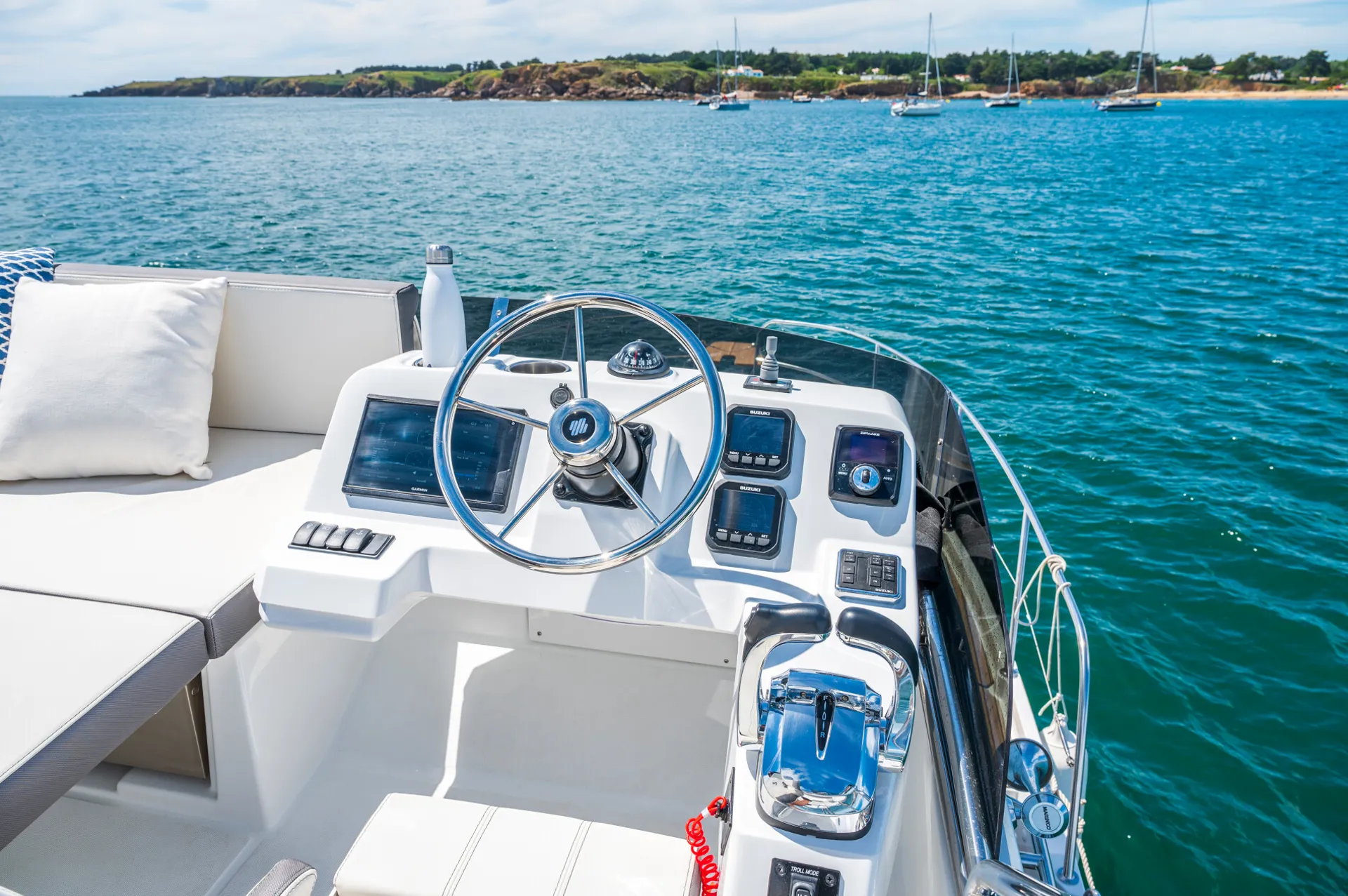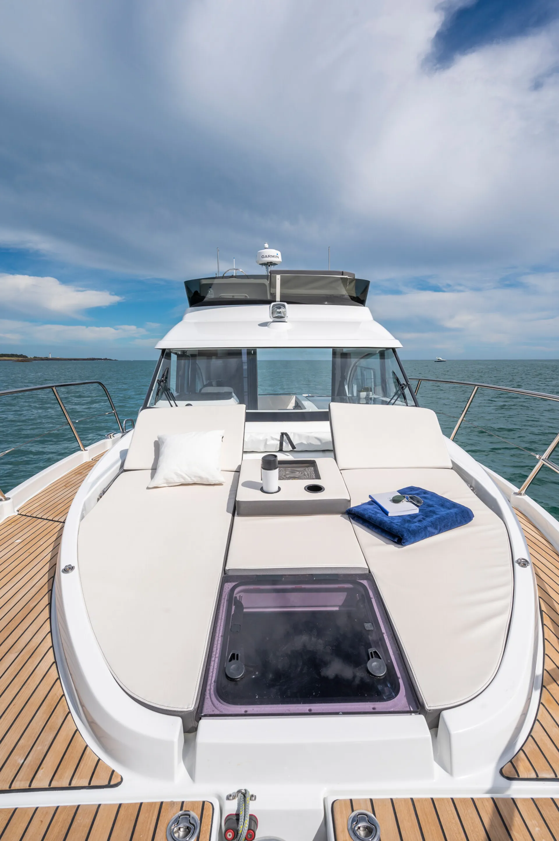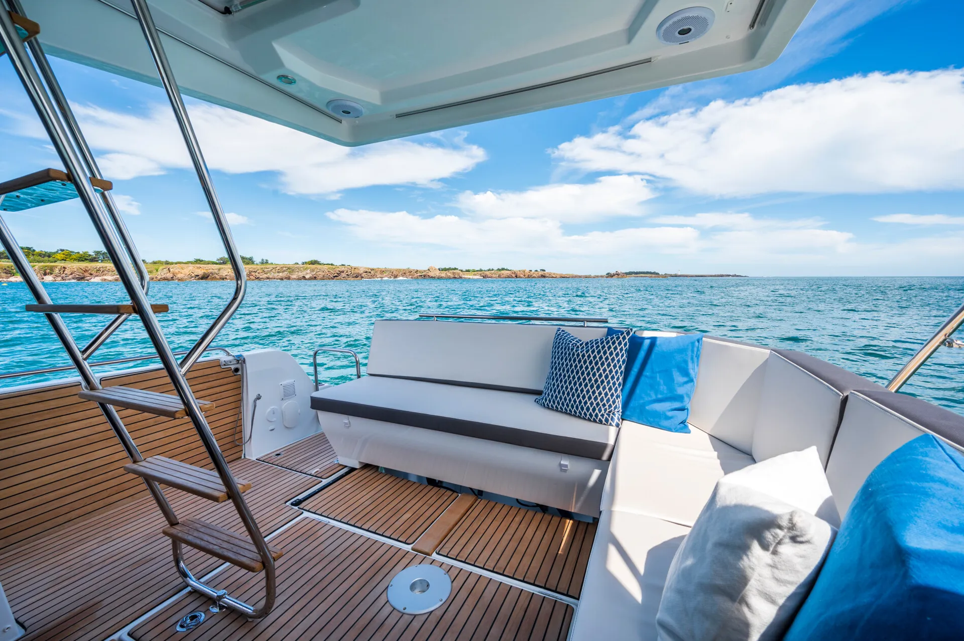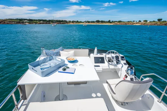 Prostrani flybridge pruža savršeno mjesto za odmor i druženje, s dvije klupe okrenute jedna prema drugoj, velikim sunpadovima i panoramskim pogledom. Kokpit i flybridge nude dovoljno vanjskog prostora za obitelj i prijatelje, dok brojne prozorske stijene i trosklopiva klizna vrata osiguravaju obilje prirodnog svjetla u unutrašnjosti.