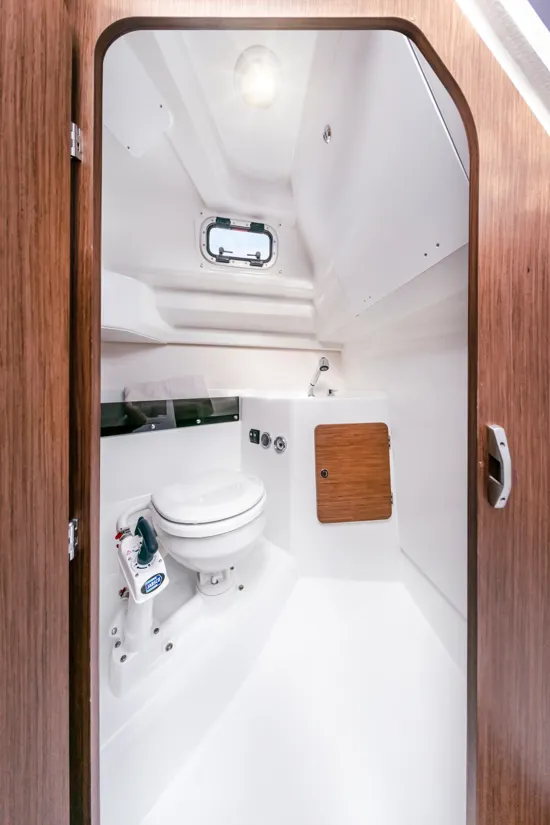 Prostrana kormilarnica ima klizna staklena ulazna vrata kroz koja se ulazi u potpuno opremljeni dnevni prostor. Dvokrevetna kabina u pramcu pruža udoban ležaj, dovoljno spremišta, zaseban WC i tuš , idealno za višednevni boravak na brodu.