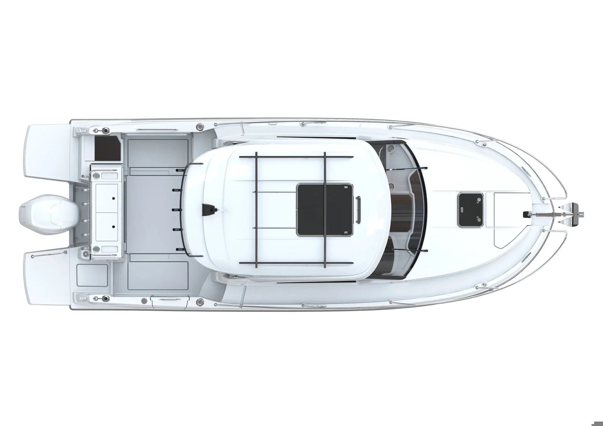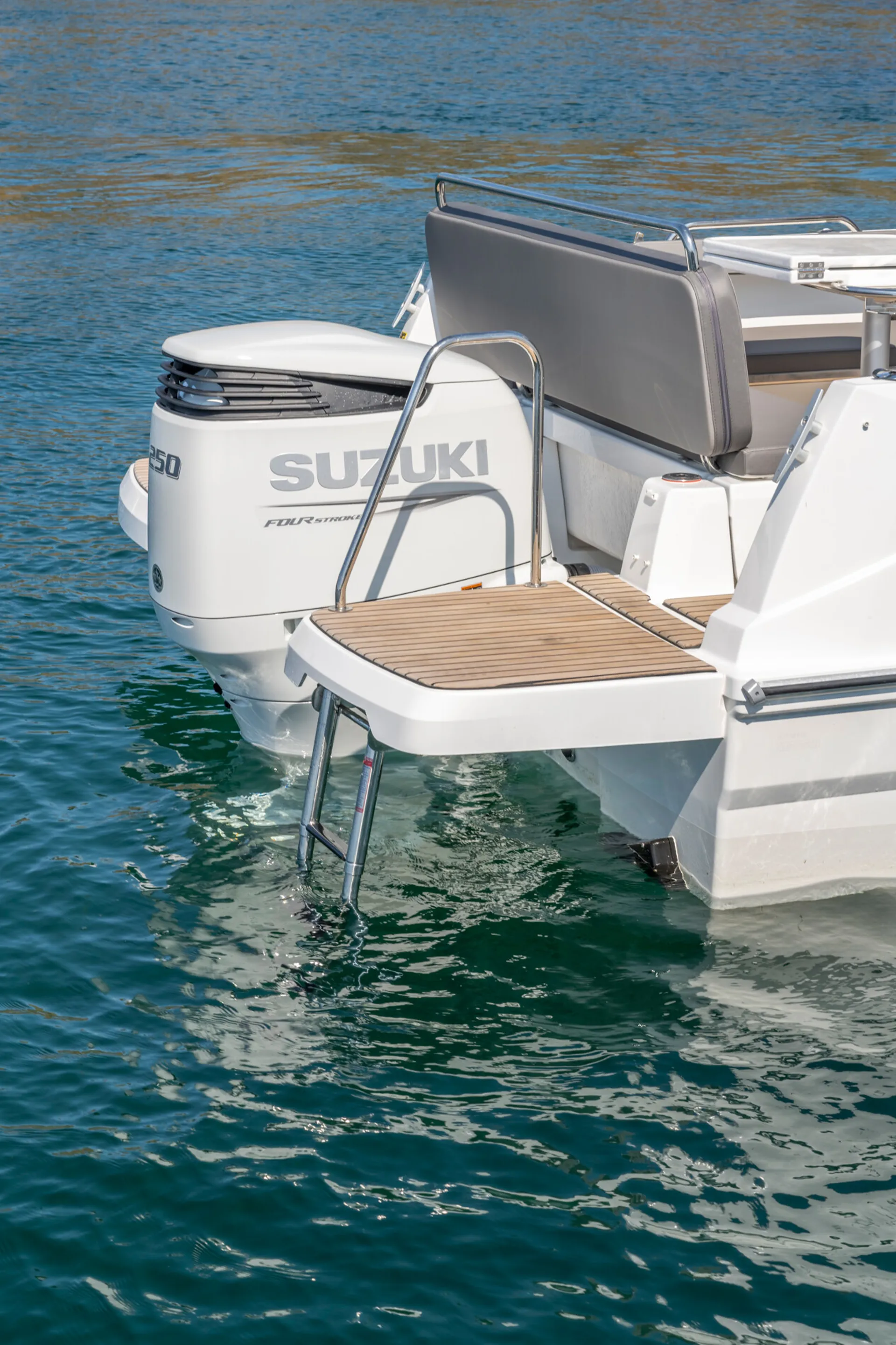 Dodatni paketi uključuju GARMIN elektroniku i Fusion audio sustav, a vanjske opcije obuhvaćaju tendu u kokpitu, vanjske jastuke, krovne nosače, pramacni propeler i poliesterske platforme za kupanje. Luksuzni kuhinjski blok i hladnjak od 42 litre upotpunjuju savršenu kombinaciju udobnosti i stila.