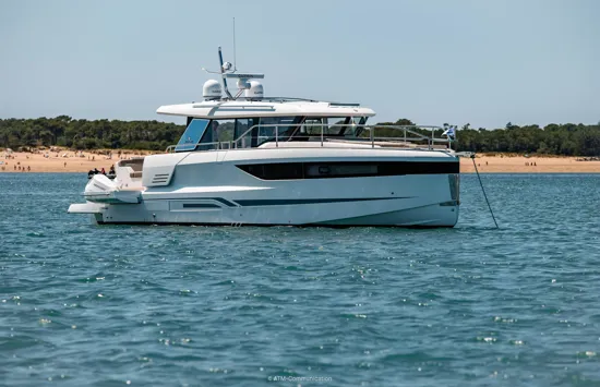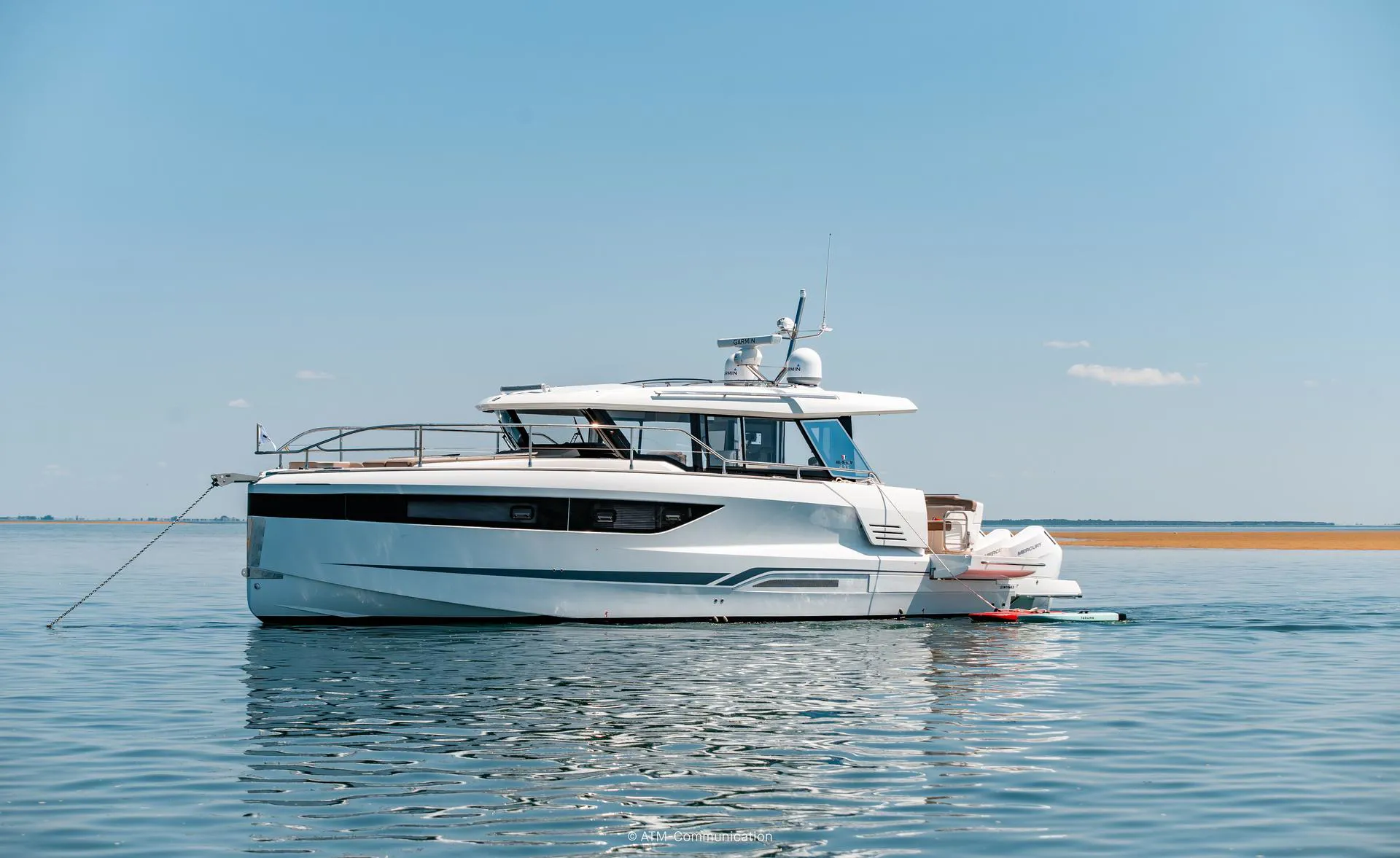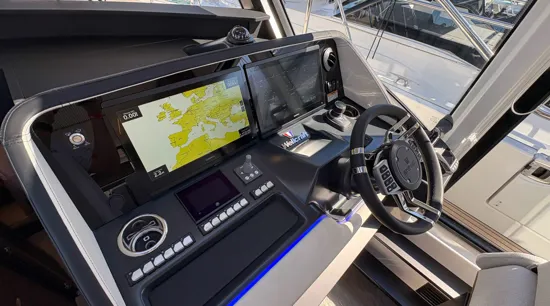 Dodatne značajke: klimatizacija svih prostora, kokpit hladnjak, roštilj, aparat za led, inverter, automatski Zipwake trim i sunčane tende. Veliki kapacitet goriva i vode, uz generator 7,5 kVA, osiguravaju dulje boravke na moru.