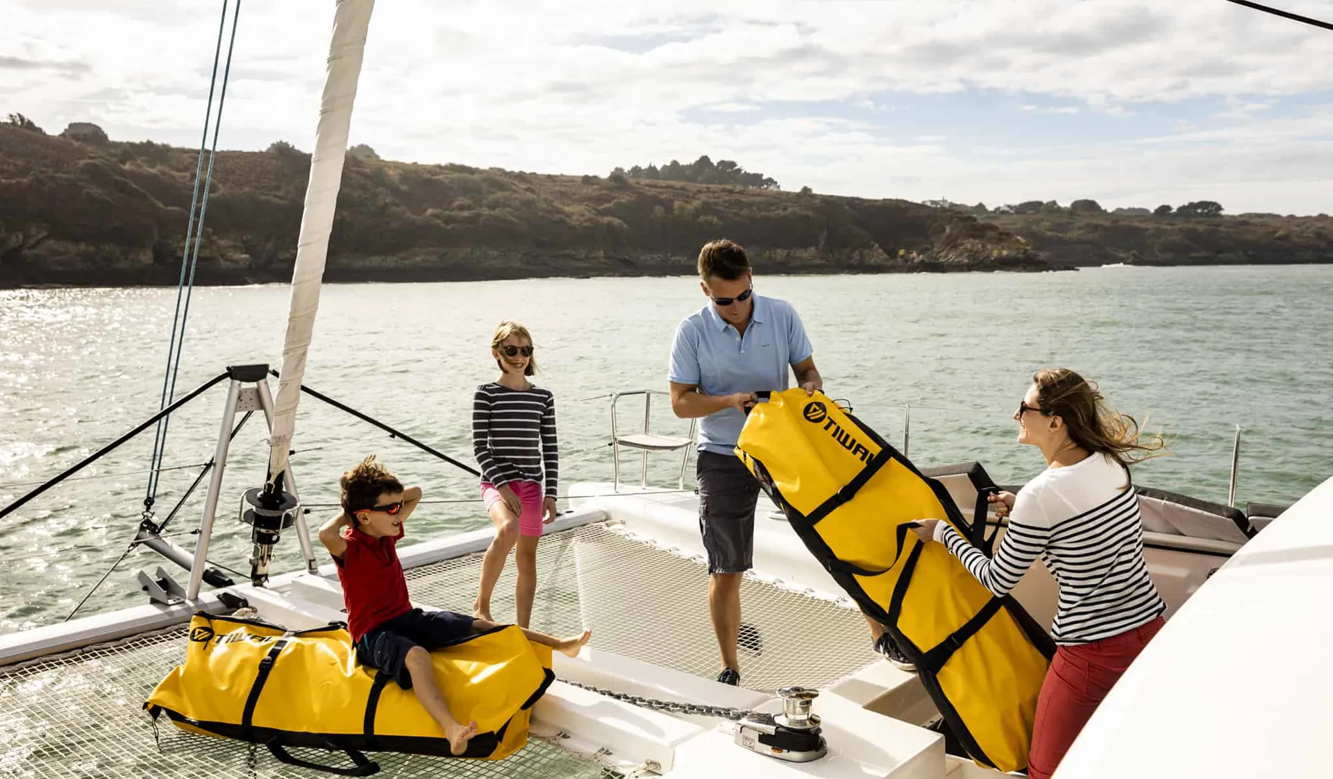 Lako sklopiv i jednostavan za spremanje: Lagan i kompaktan, Tiwal 2 može se pohraniti na trampoline katamarana ili na palubu jedrilice. Sedam ručki olakšava porinuće, a trup je jednostavan za rukovanje u vodi.