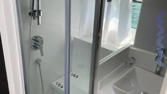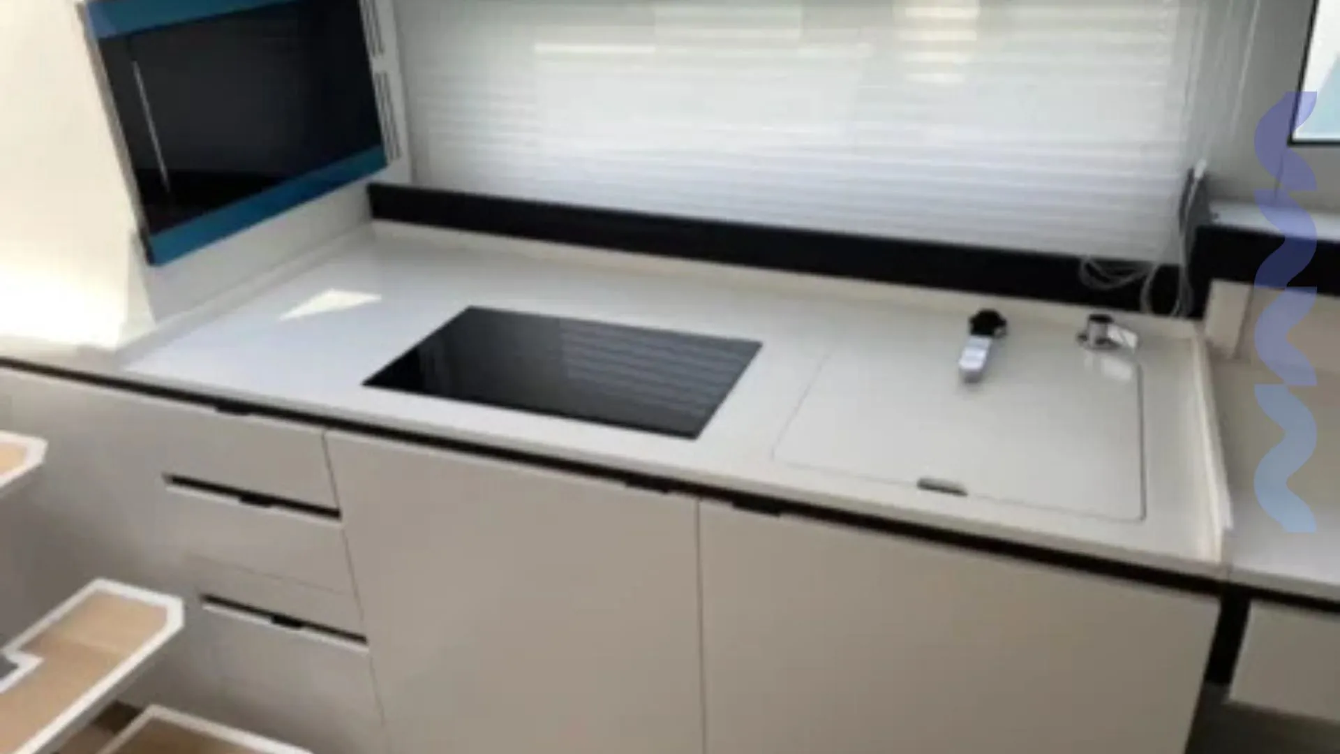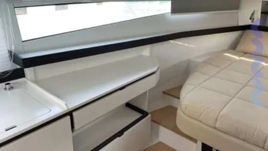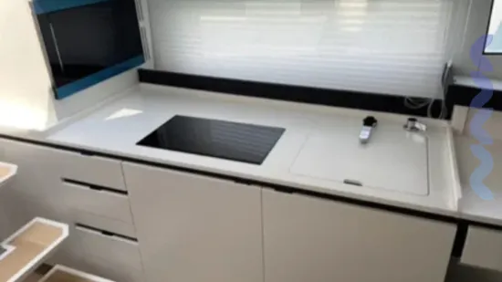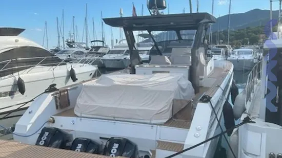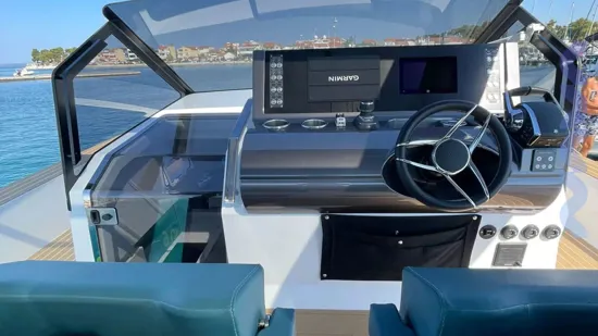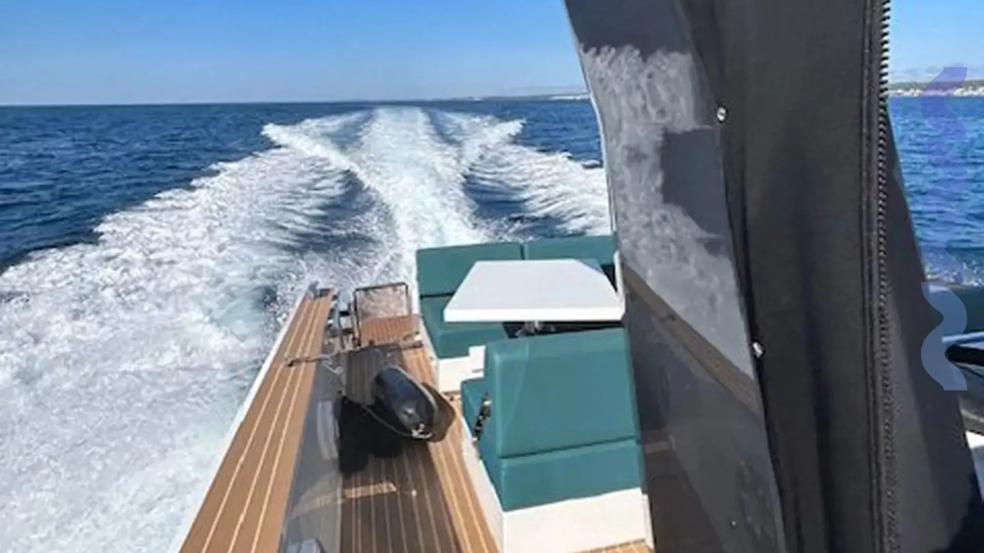 Elegantan teak-look kompozit, krmene klupe postavljene jedna nasuprot druge, stol, dodatni kokpit hladnjak (65 l) i nadograđena rasvjeta čine boravak na palubi pogodnim za druženje i zajednoičke oborke uz zalazak sunca. Pristup moru olakšan je elektrohidrauličnom platformom koja ima integrirane ljestve.