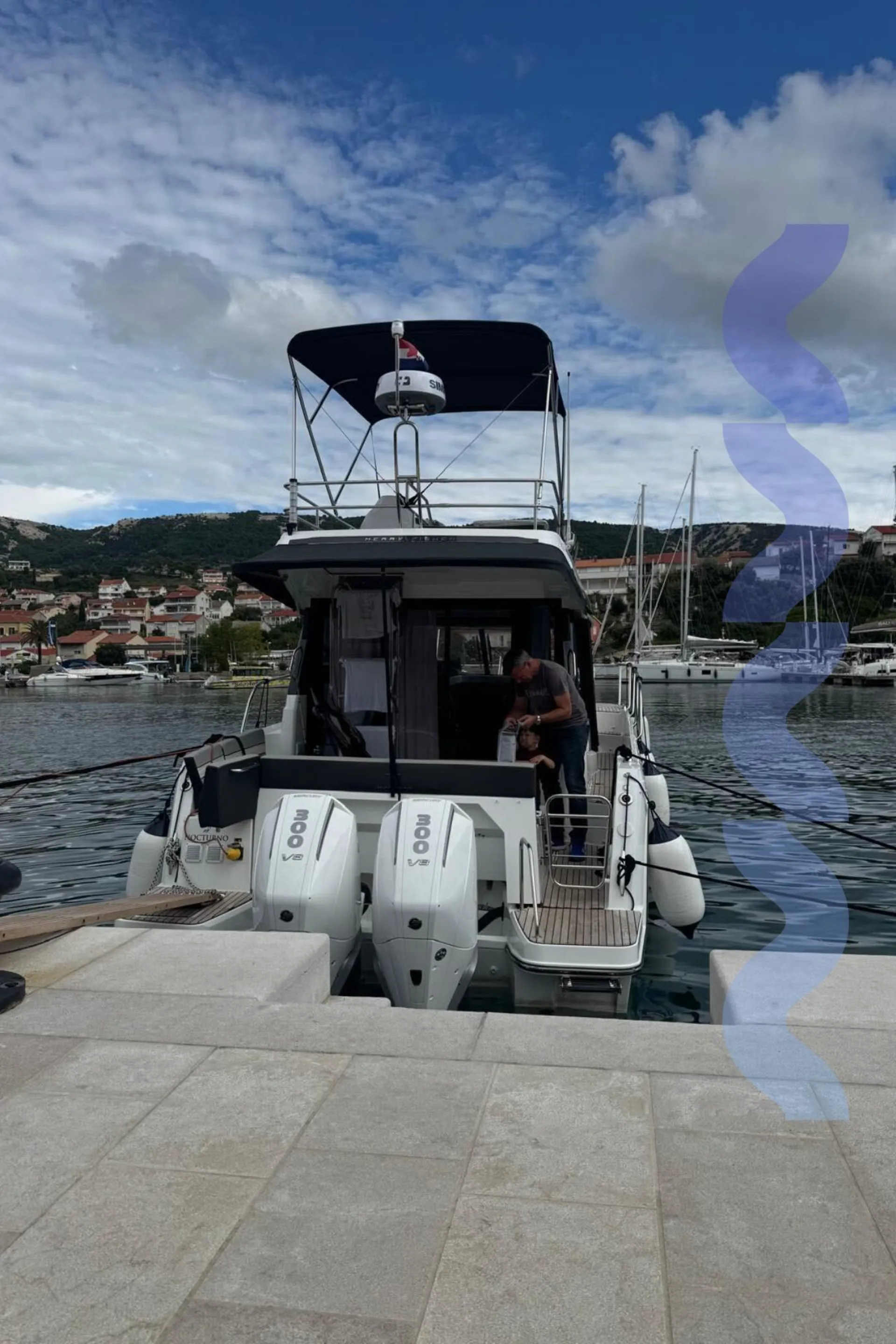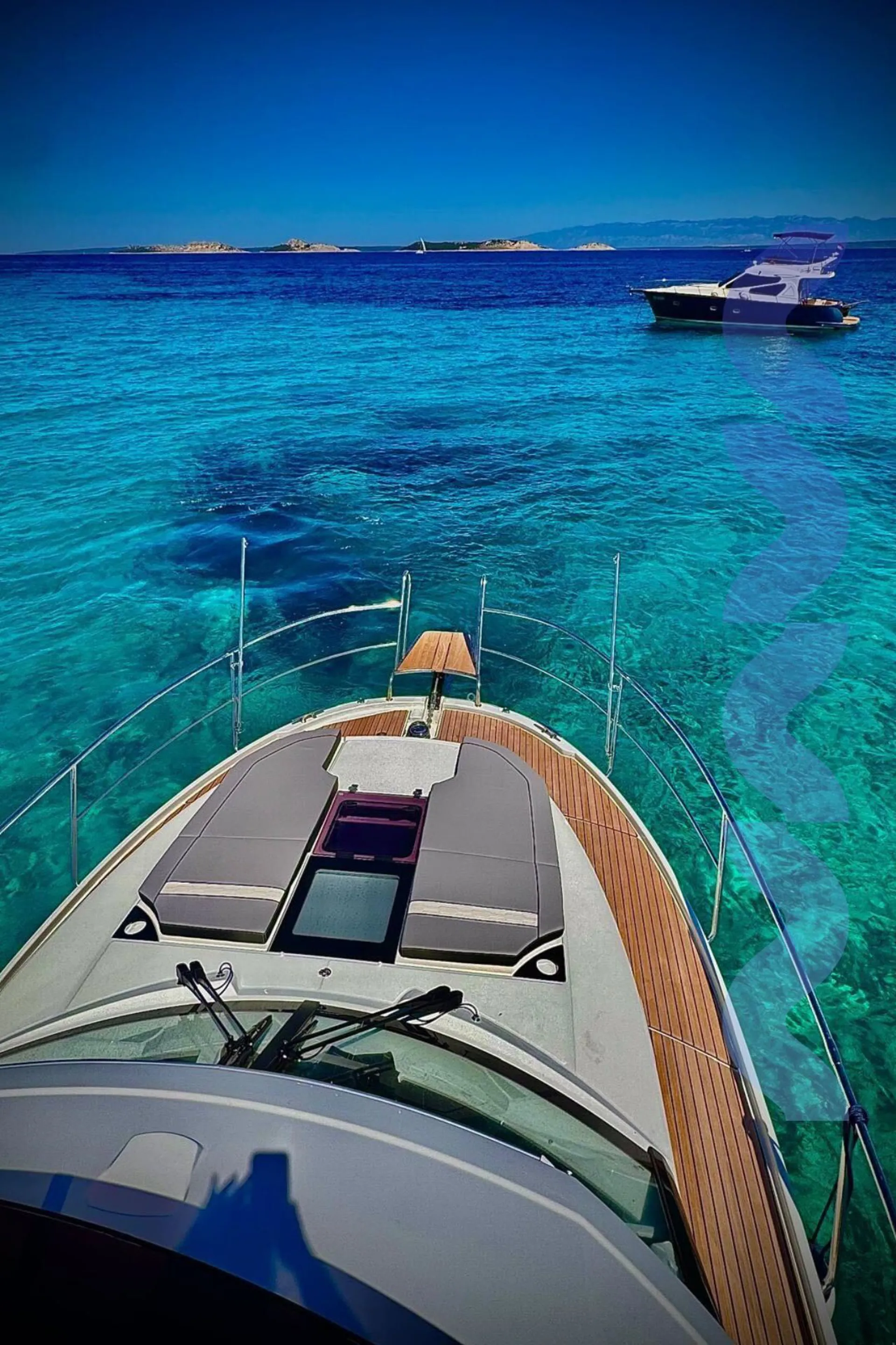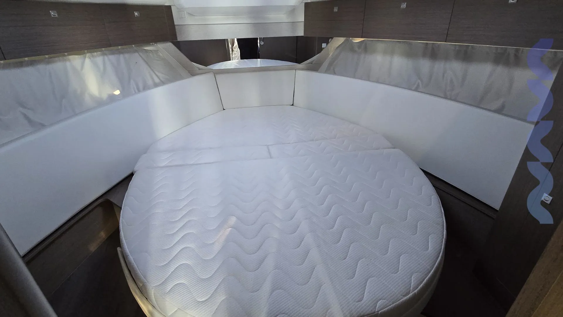 Prostran i funkcionalan interijer s više kabina, dodatnim ležajem u salonu, velikim kapacitetom vode i dodatnim hladnjakom čini ovo plovilo odličnim izborom za obiteljska krstarenja i višednevne boravke. Manevriranje je jednostavno zahvaljujući pramčanom i krmenom propeleru, a kompletna SIMRAD navigacija s radarom i autopilotom jamči sigurnu plovidbu.