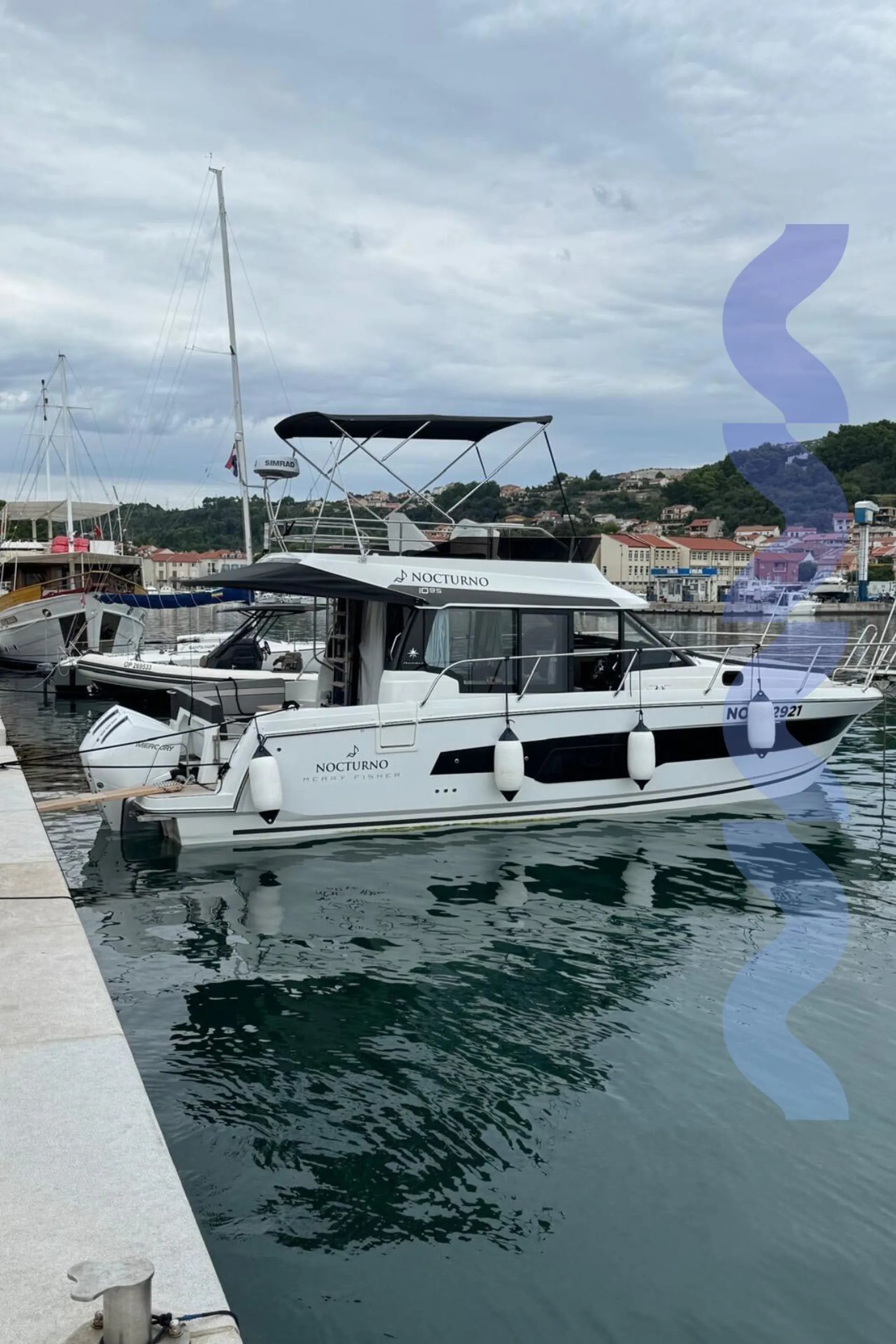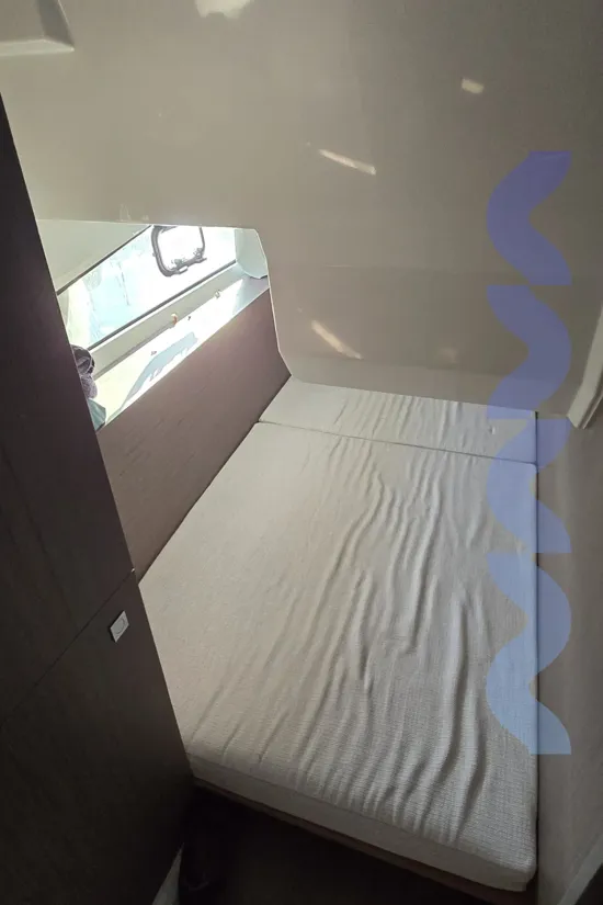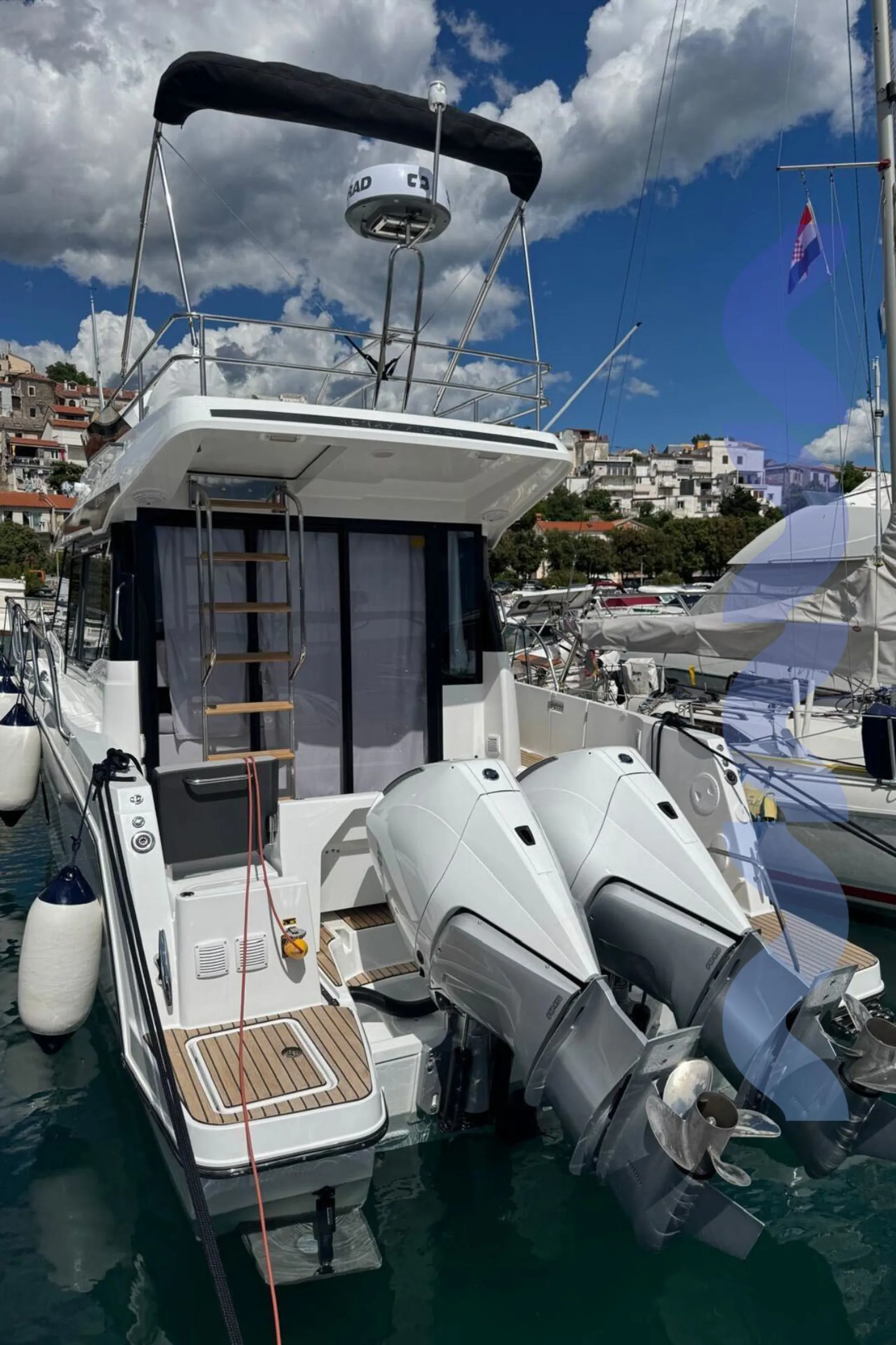 Prostran i funkcionalan interijer s više kabina, dodatnim ležajem u salonu, velikim kapacitetom vode i dodatnim hladnjakom čini ovo plovilo odličnim izborom za obiteljska krstarenja i višednevne boravke. Manevriranje je jednostavno zahvaljujući pramčanom i krmenom propeleru, a kompletna SIMRAD navigacija s radarom i autopilotom jamči sigurnu plovidbu.