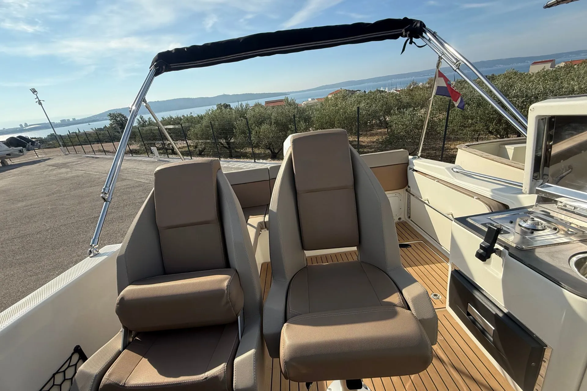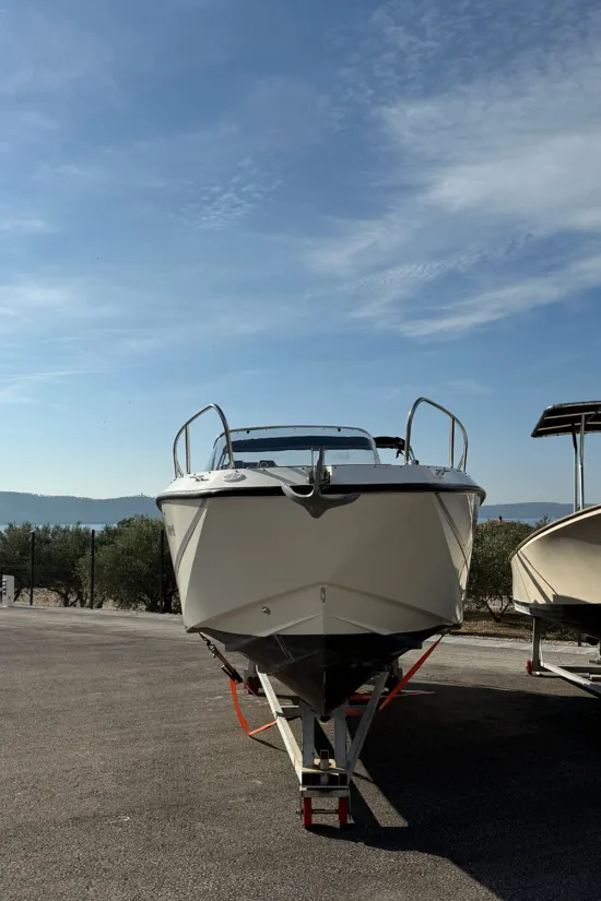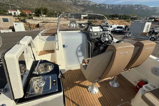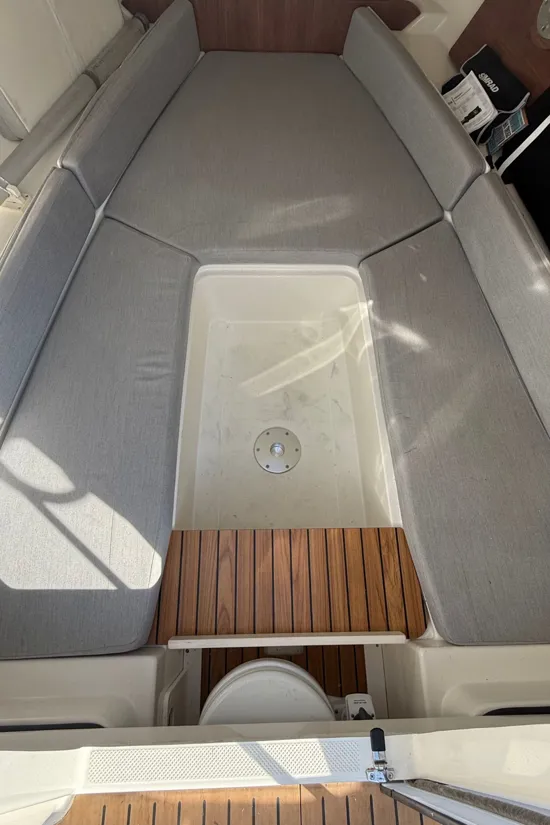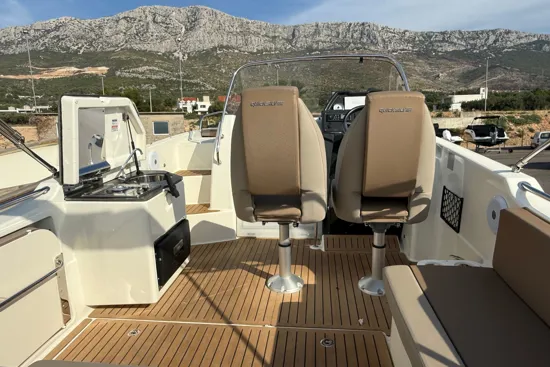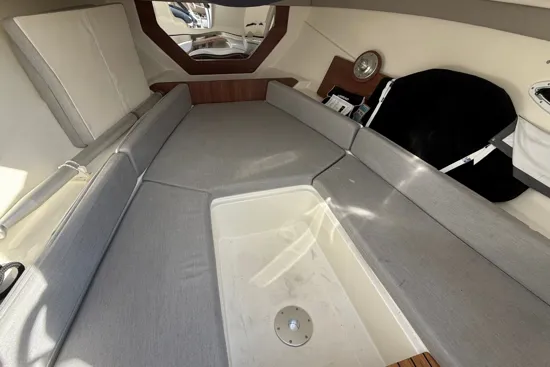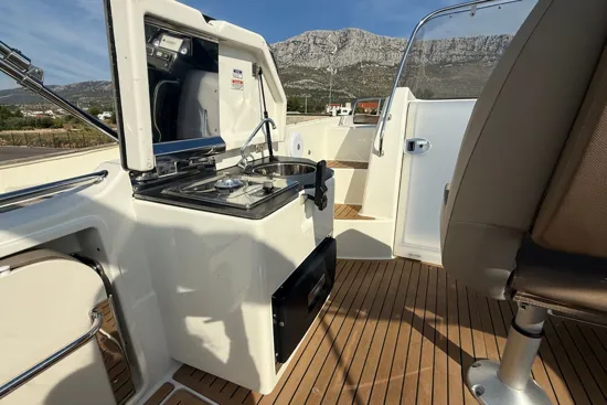 Opremljeno je Simrad ploterom, Flexiteek podnicom, krmenom platformom, kuhinjskim modulom s pločom za kuhanje, sudoperom i toplom vodom. Prostrani kokpit i pametan raspored omogućuju maksimalnu udobnost i užitak na moru.