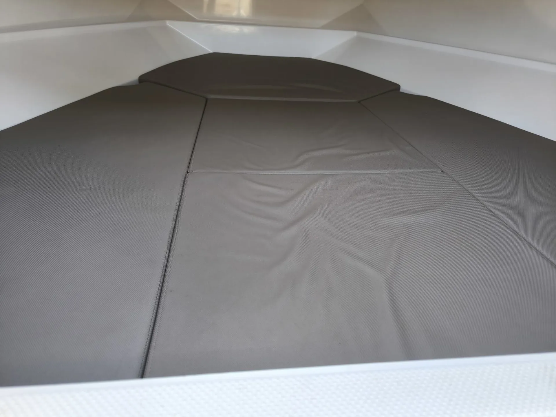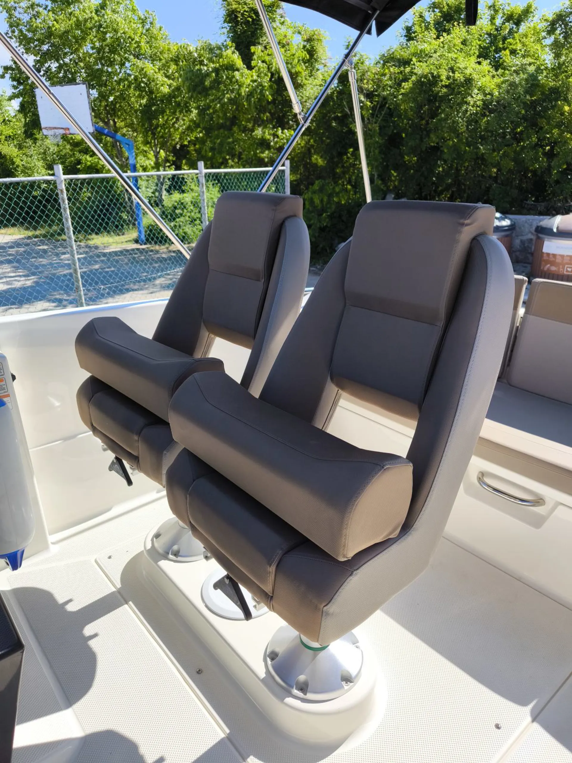 Opremljen GPS-om, fishfinderom, Garmin ECHOMAP ULTRA 102SV, FUSION audio sustavom, tušem, bimini krovom i tendama za sunce, QUICK električnim vitlom te produženim platformama za kupanje, svaki izlazak na more je jednostavan i ugodan. Premium jastuci, stol u kokpitu i zaštitne navlake osiguravaju udobnost i praktičnost na brodu.