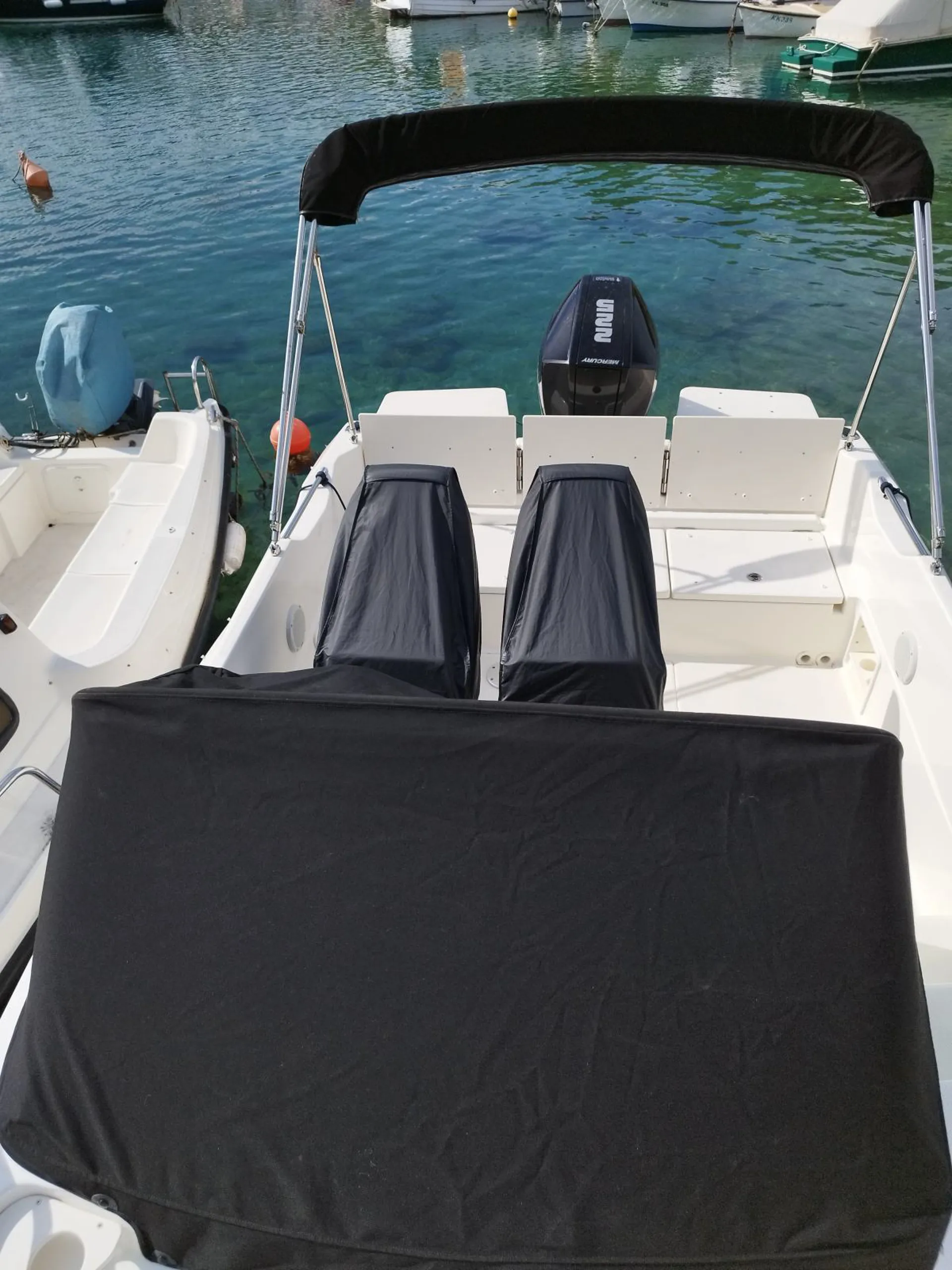 Dolazi s prikolicom HARBECK BT2500M (2020), redovito je servisiran i korišten samo dva ljeta. Prodaja je zbog prelaska na veće plovilo.