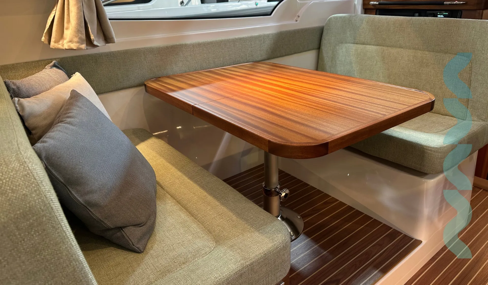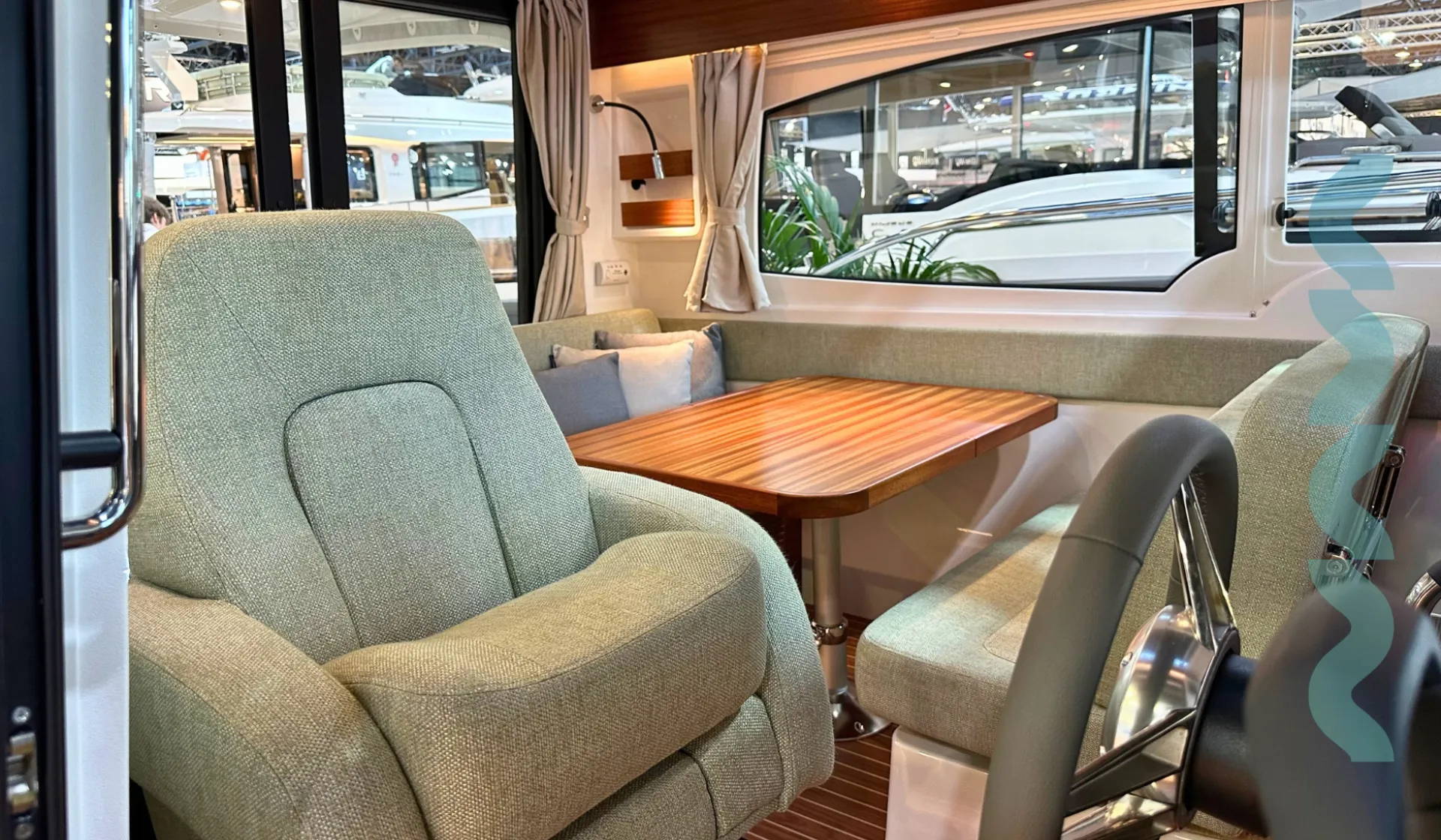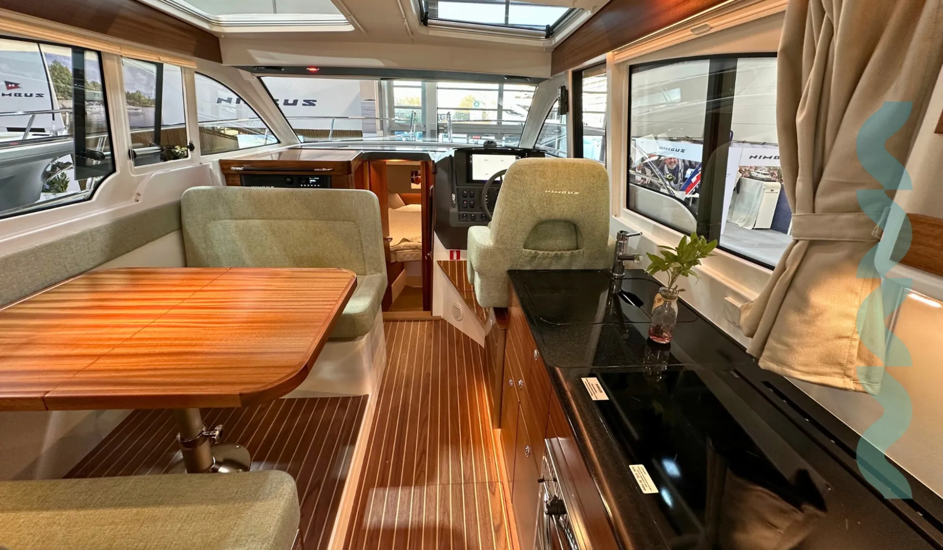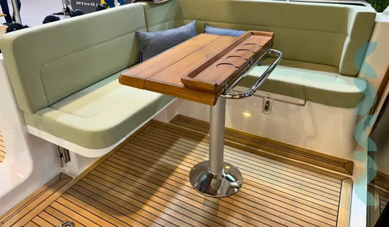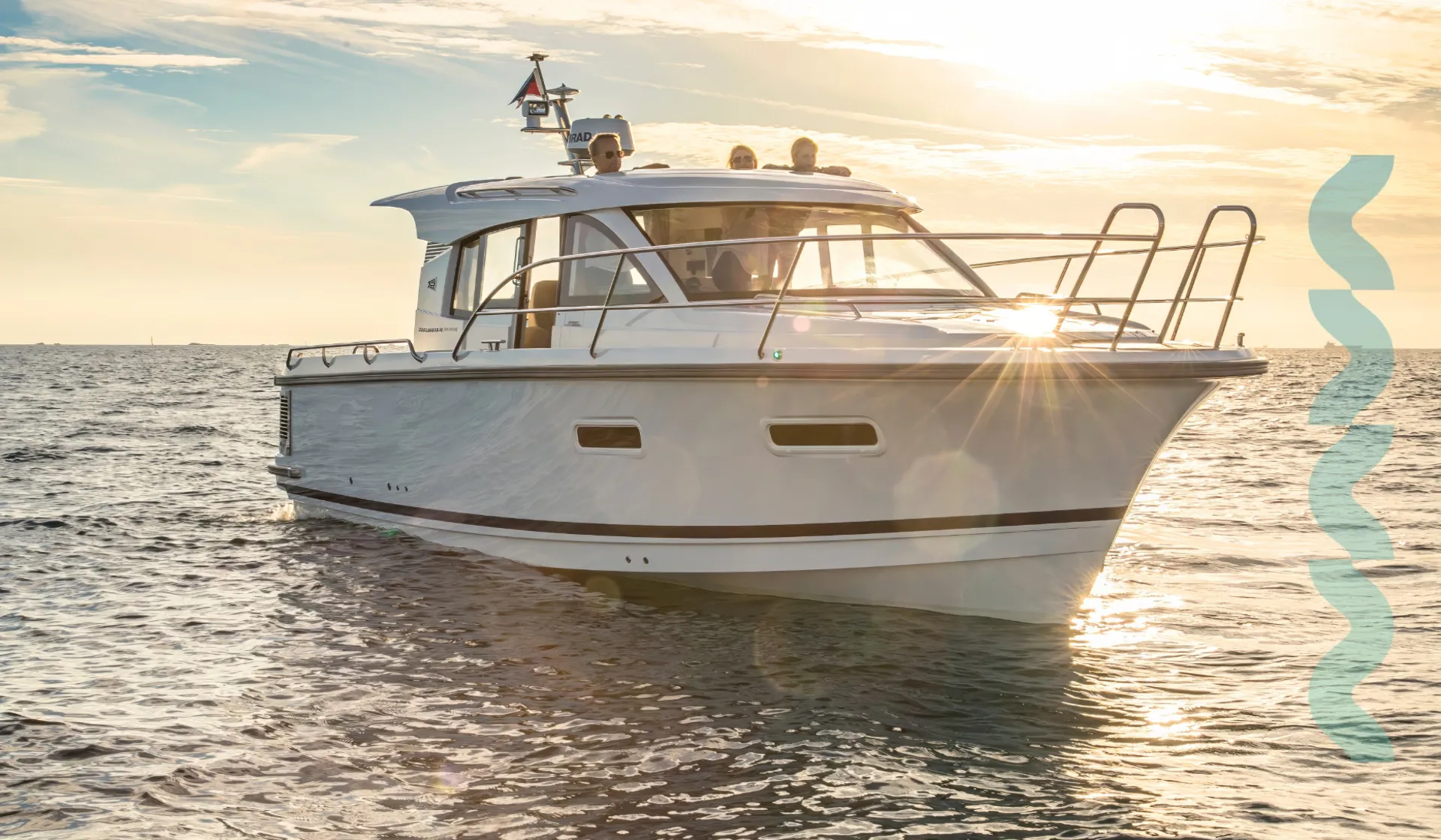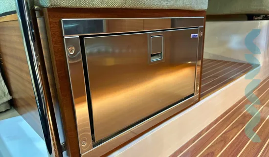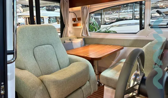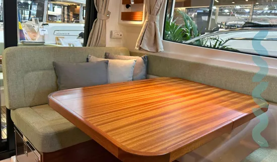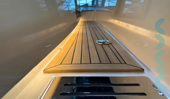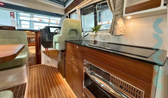 Brand-new model with full premium equipment. The specification includes bow and stern thrusters, a 16'' Simrad EVO 4 navigation system, autopilot, VHF with AIS, solar energy package and luxurious mahogany interior finishes. On the inside there's comfort for everyone. A fully-equipped galley has a ceramic gas cooktop and a built-in oven, extra refrigerator in the deck saloon, exclusive dinner set for 6, and upgraded mattresses in both cabins.