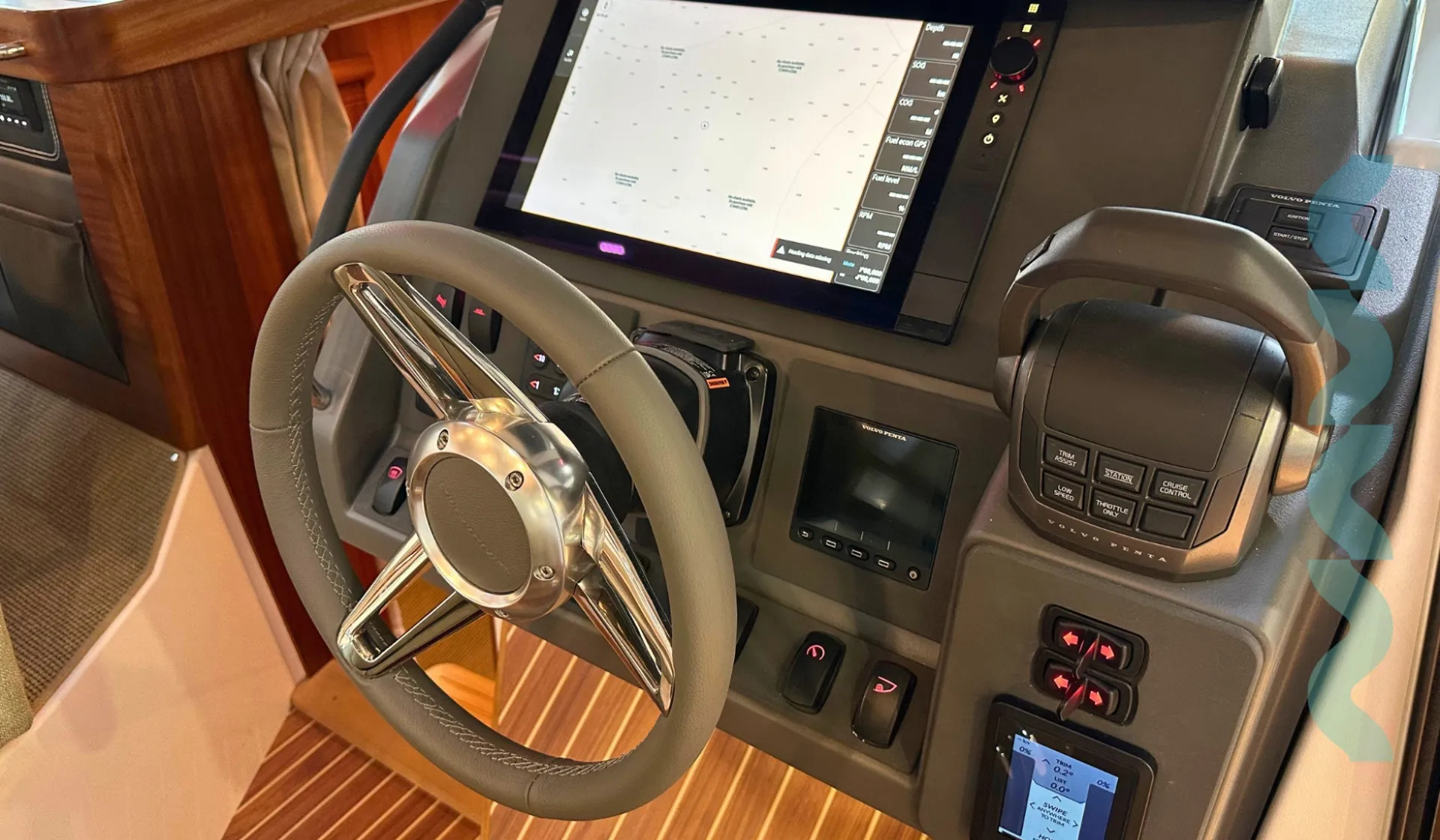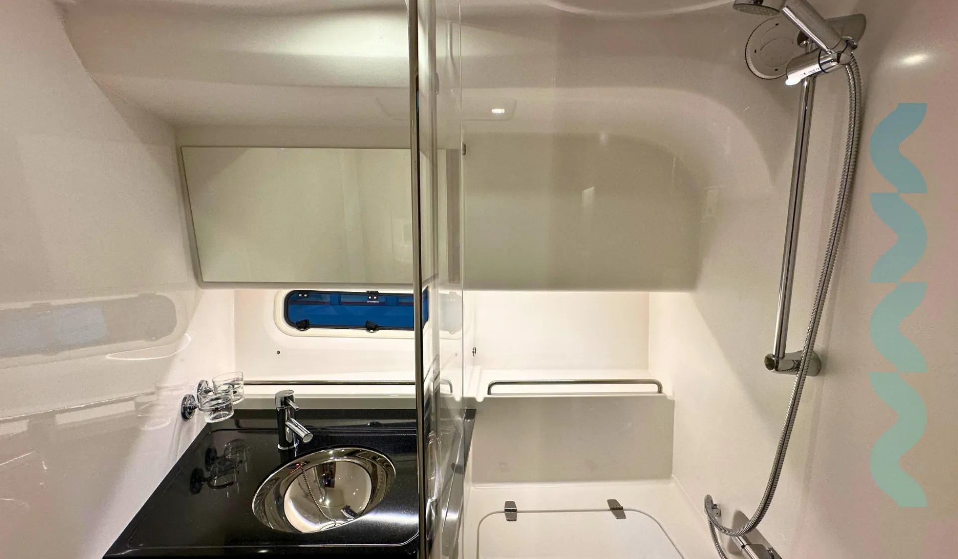 Convenience & entertainment are included. Hot & cold shower on the swim-platform, underwater lights for evening swims, electric anchor winch, remote control for bow and stern thrusters, full LED lighting, and cushions plus canopy for comfort.