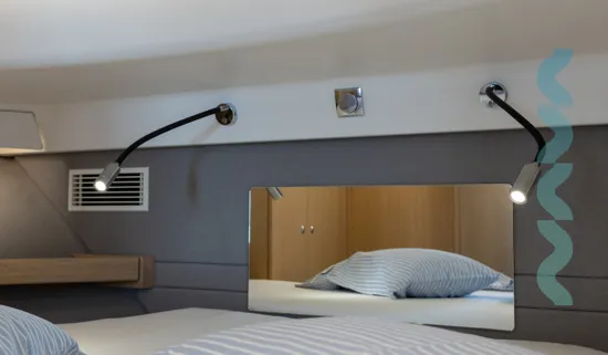 Equipped with 2 Volvo Penta D4-320 Shaft engines, a generator, air-conditioning, a bow thruster, Simrad autopilot, plotter and sounder, solar panel, and roof racks, Bonbon is your motorboat for any and all adventures in Croatia! Enjoy the additional perks of the 22'' TV with DVD, sunblinds, shower on transom, LED lights, and underwater lights.