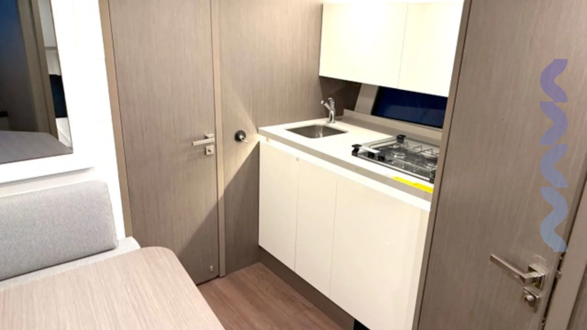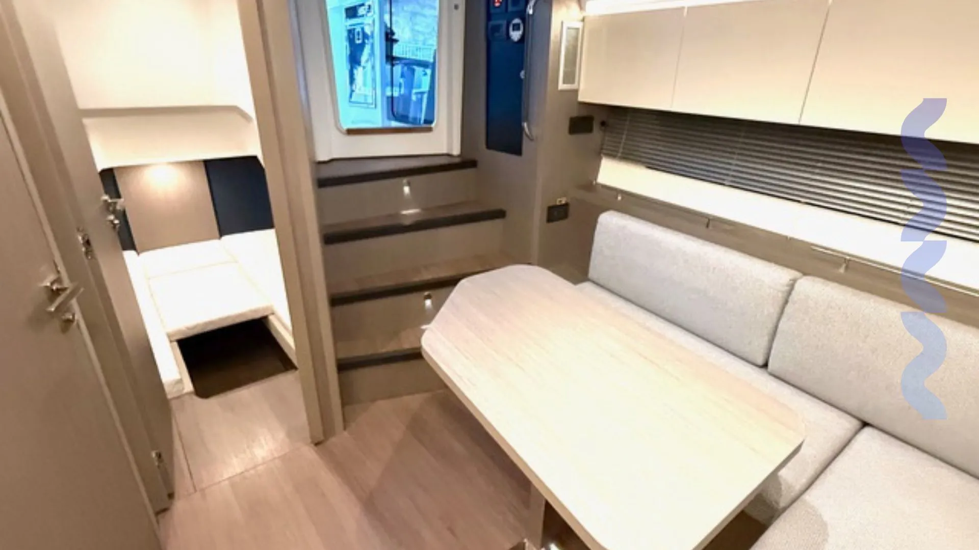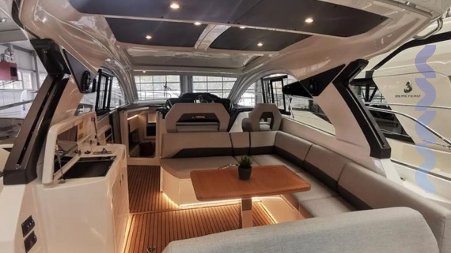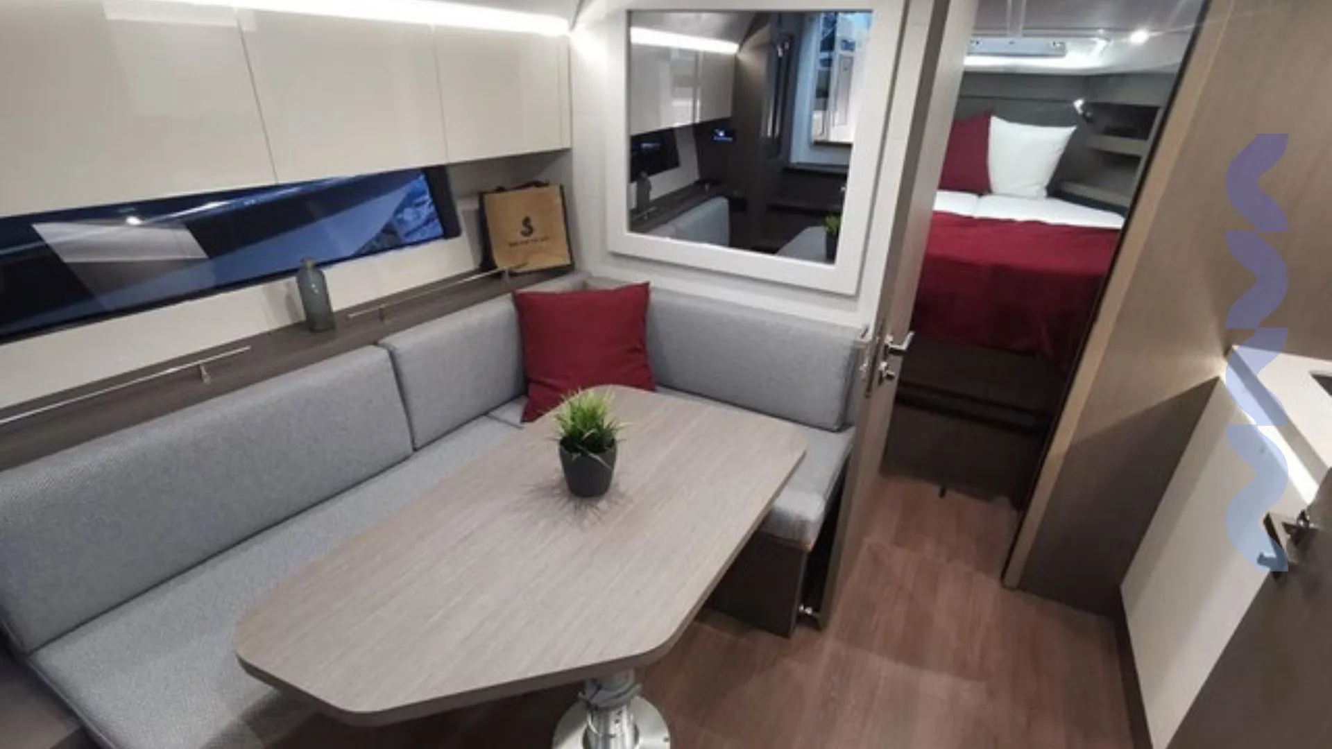 Prostoren kokpit vključuje oblazinjenje Dolce 80, hladilnik v kokpitu, žar in potopno električno kopalno platformo, kar ustvarja popoln prostor za sprostitev. Na premcu je velika ležalna površina za sončenje z zložljivo tendo, LED osvetlitev pa ustvarja prijetno vzdušje na krovu.
