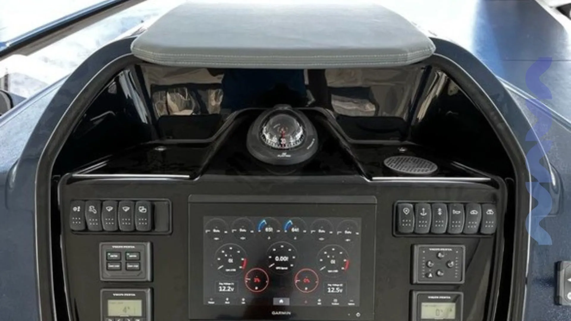 Navigacijska oprema vključuje Garmin 12” večfunkcijski zaslon, Garmin VHF z AIS in avtopilot, ter Fusion avdio sistem.