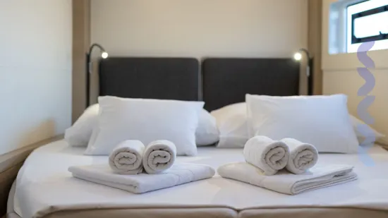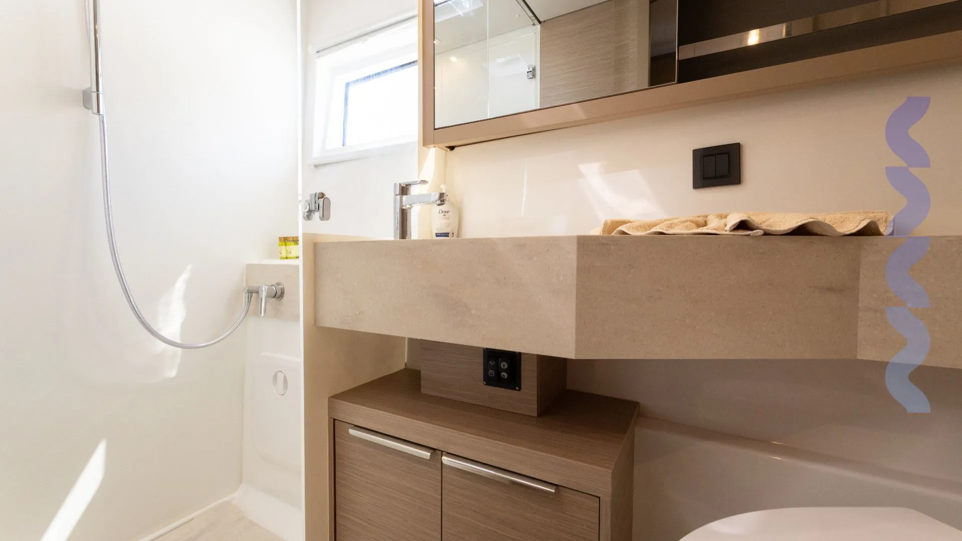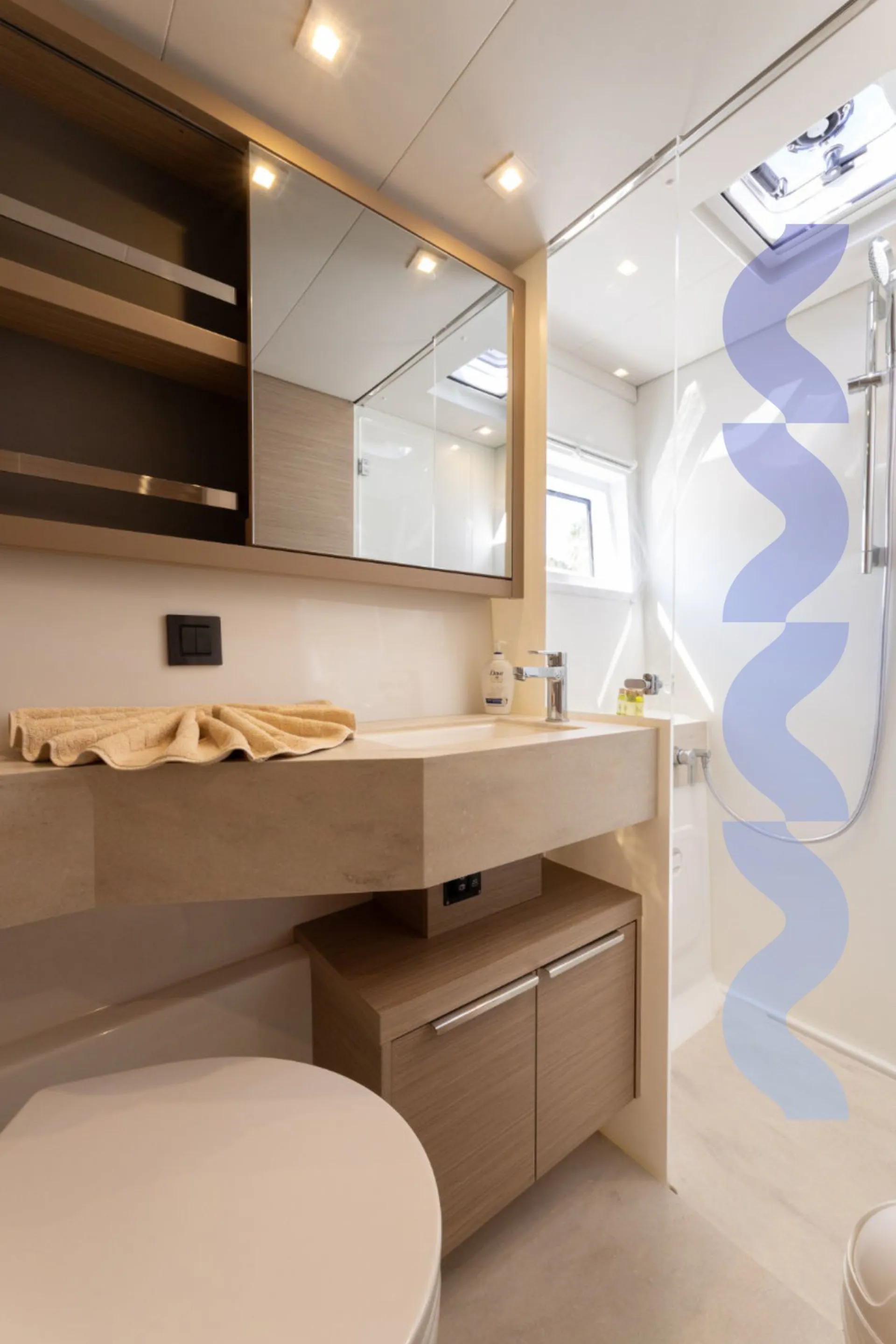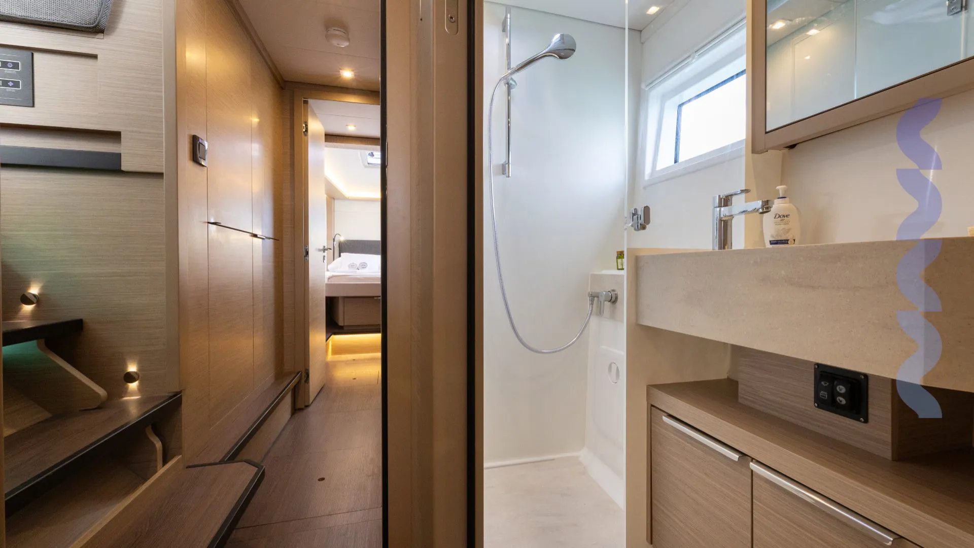 4 kabine / 4 kopalnice + 2 sprednji kabini – udobno sprejme do 12 gostov