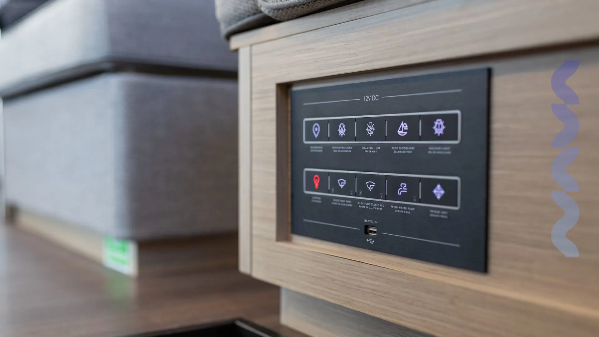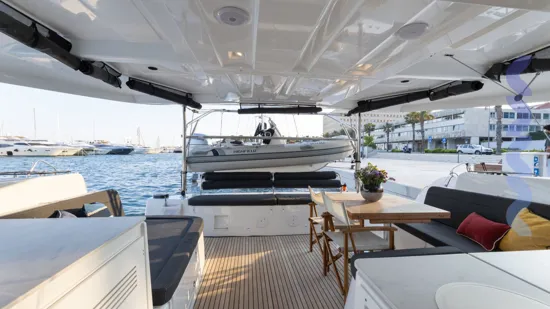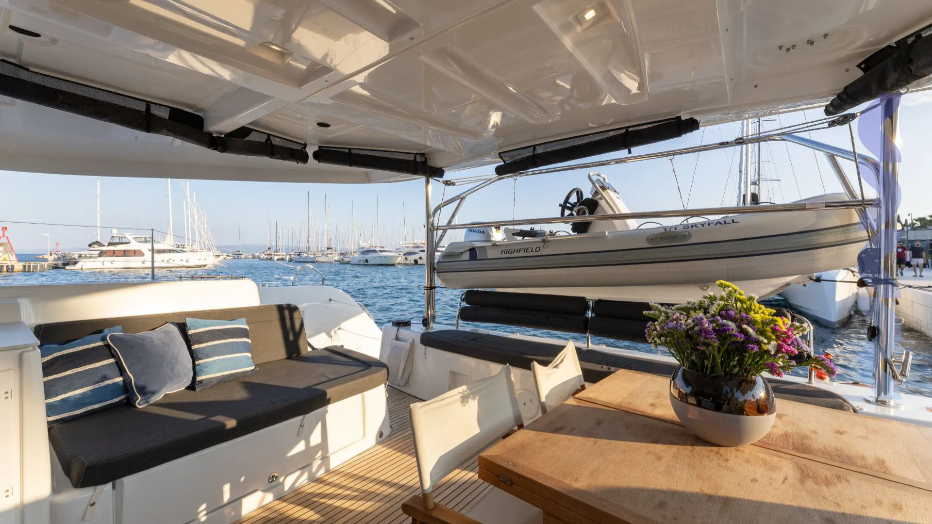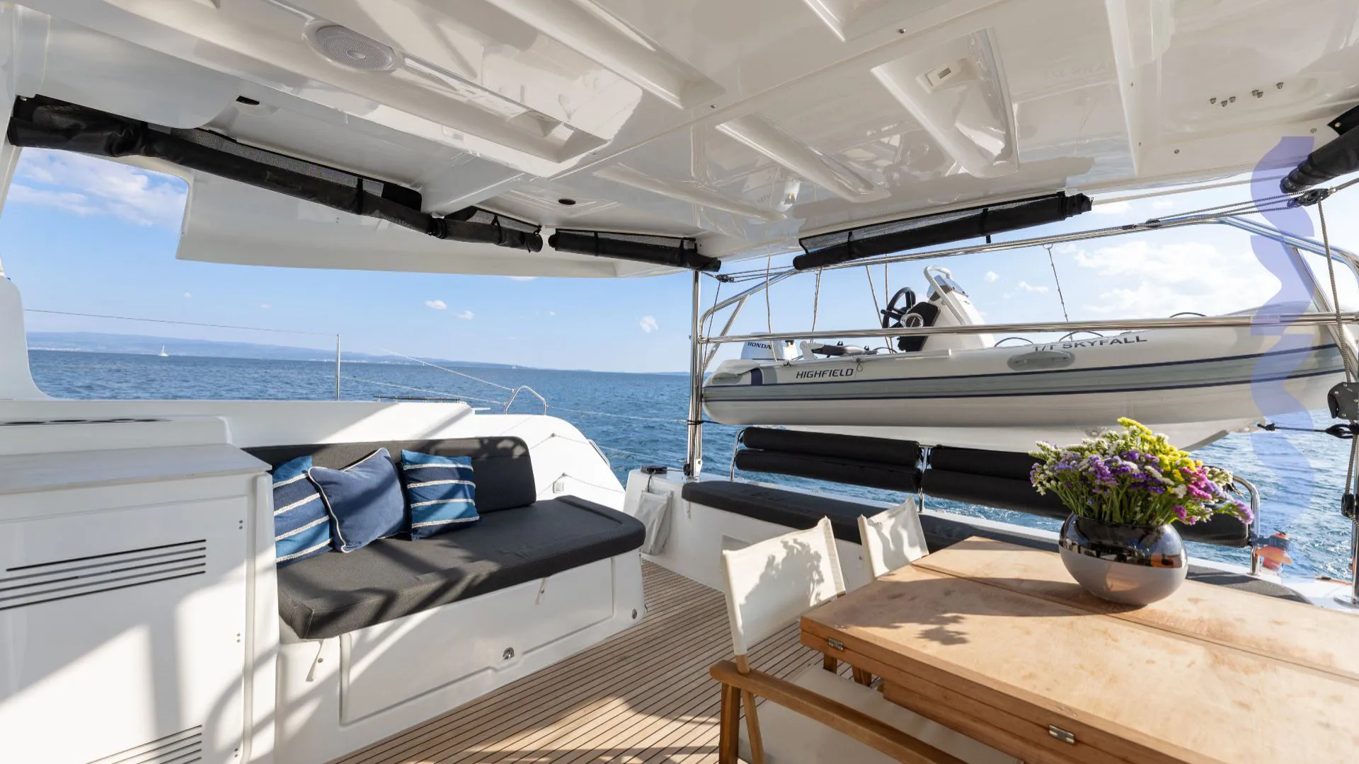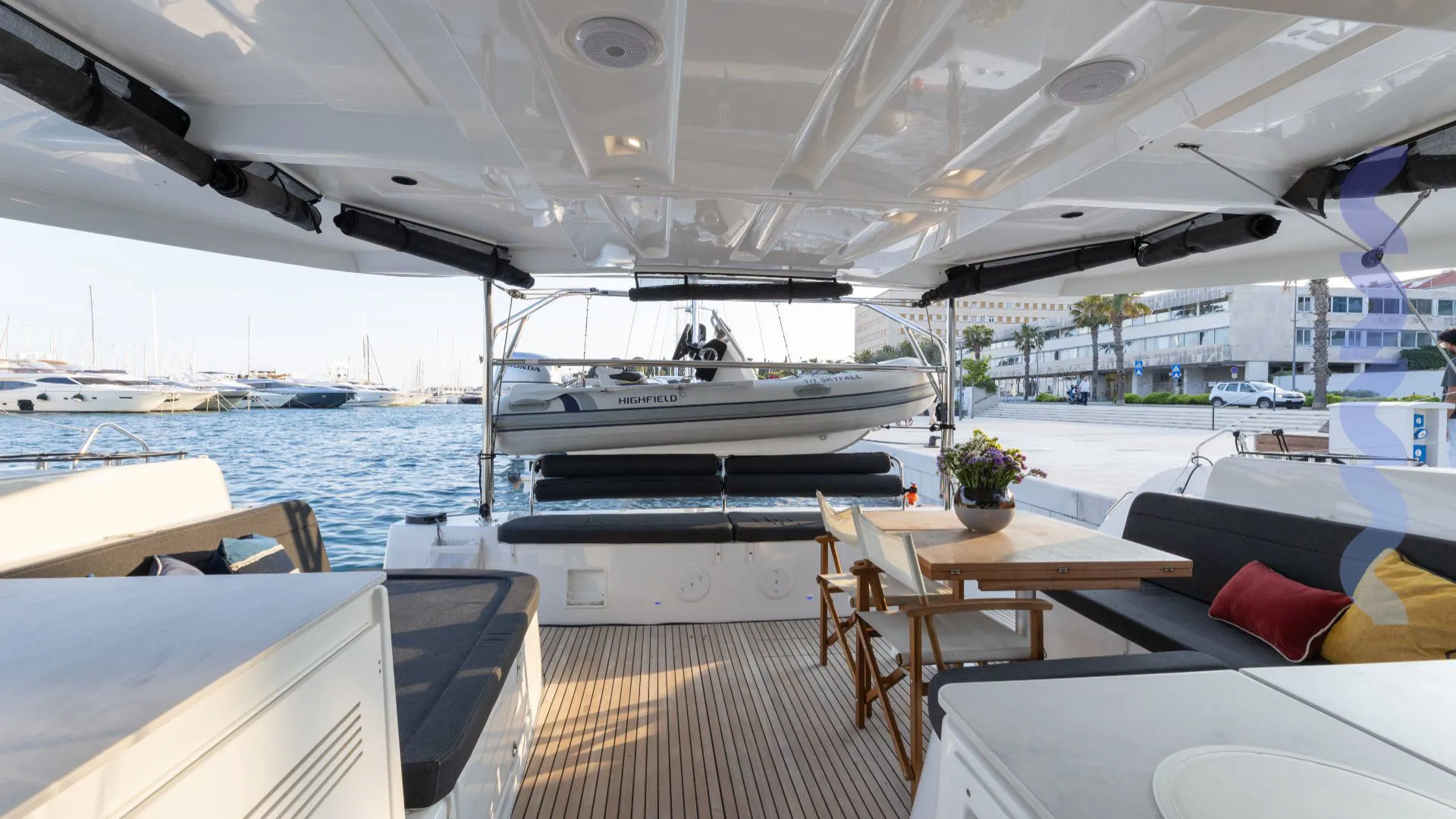 Prostorna flybridge in kokpit lounge z panoramskim razgledom na morje