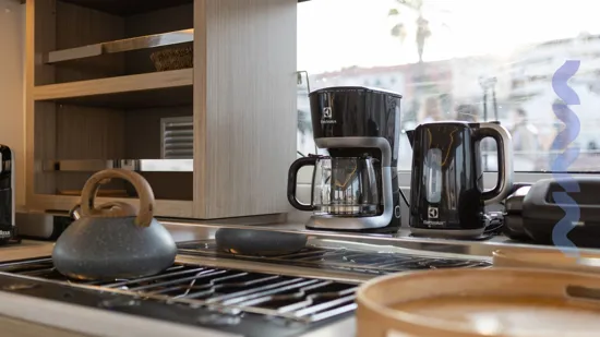 Premium kuhinja: pomivalni stroj, štedilnik s 4 gorilniki, dodatni hladilnik in zamrzovalnik