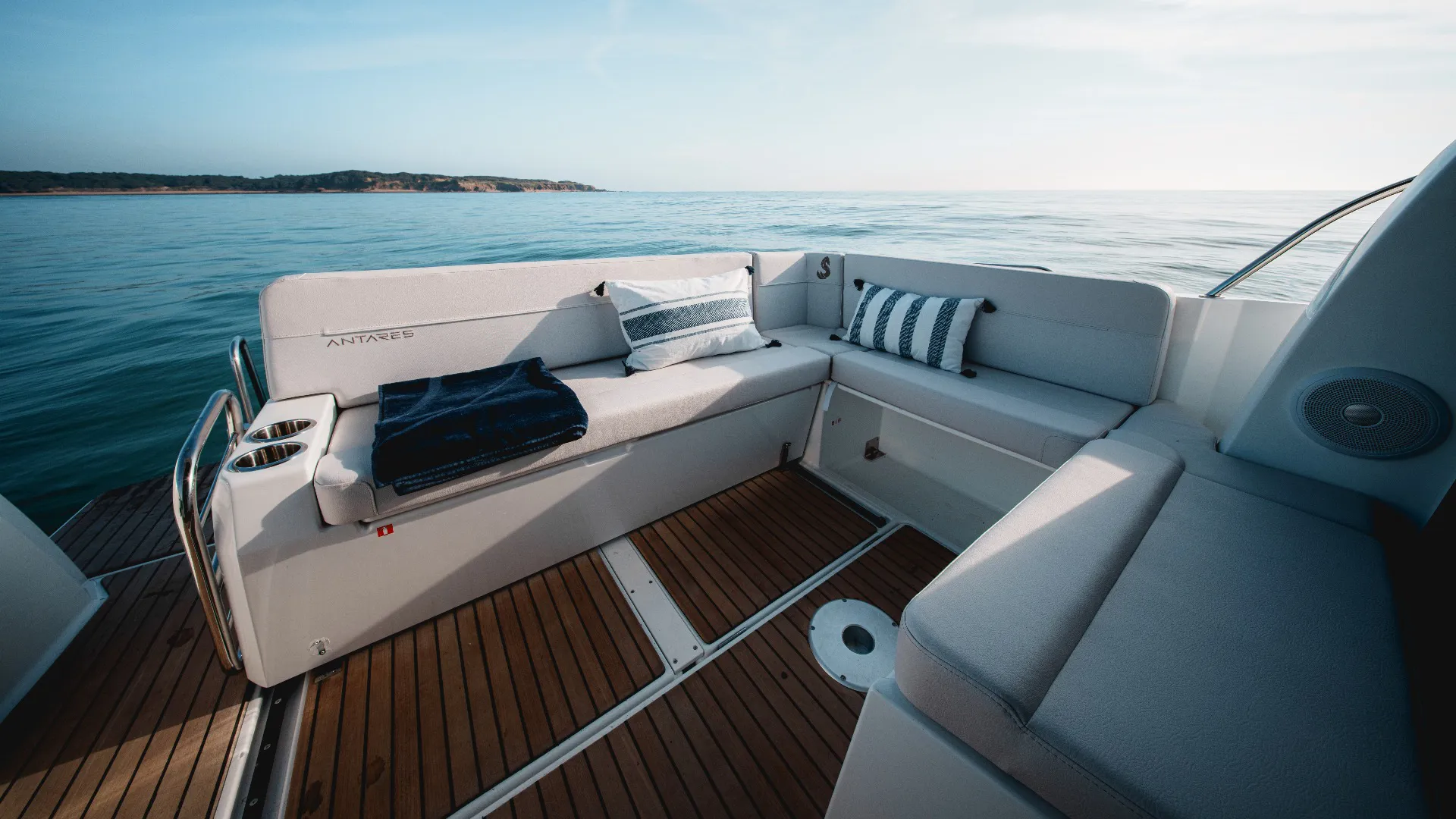 The Antares 9 OB offers everything you might need for your weekend’s voyage. With meticulous attention to detail, it is designed to enhance the overall boating experience and provides the perfect platform for leisurely days at sea.