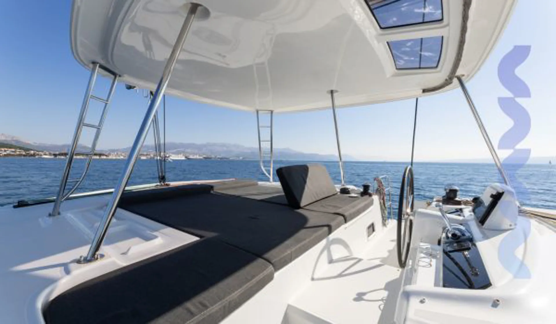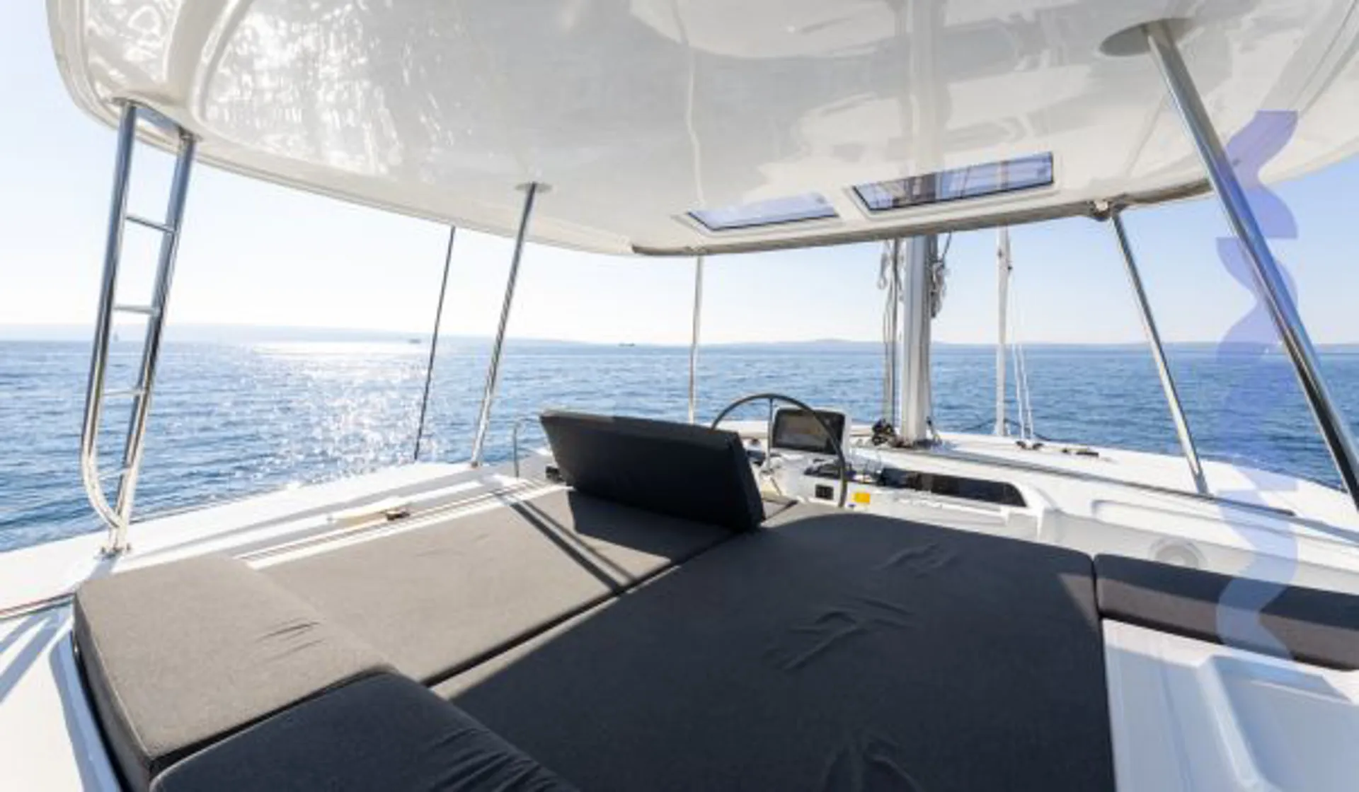 Sunlounging area cushions on the flybridge