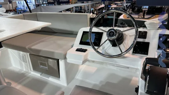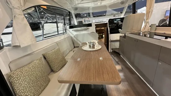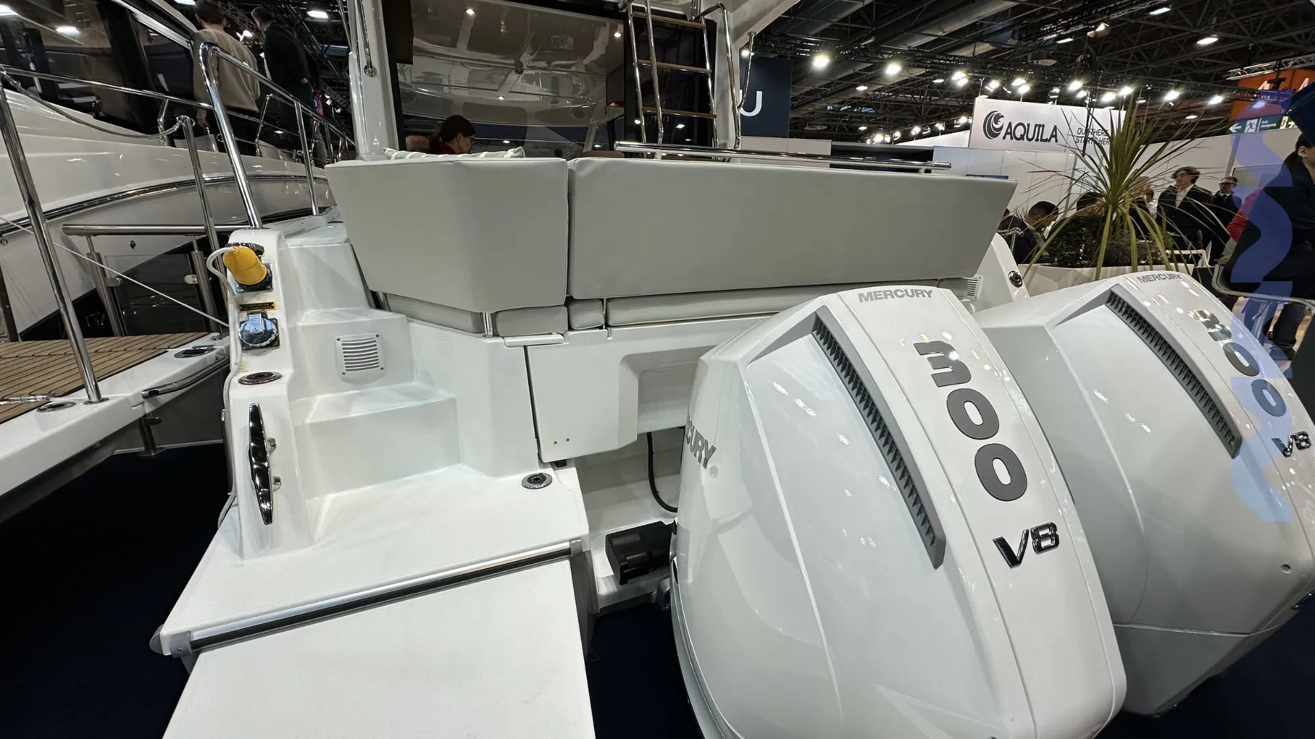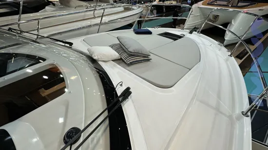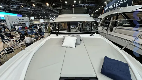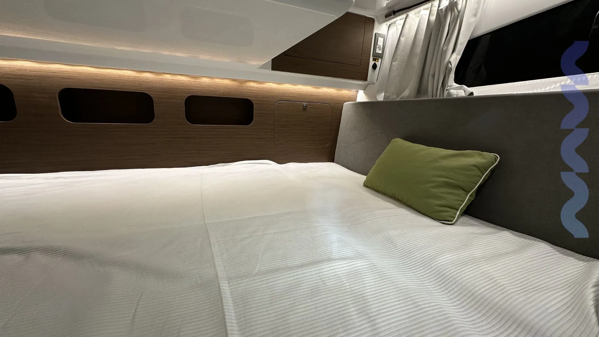 Equipped with double Mercury 300HP XXL V8 White + JPO, a generator, solar panels, electric windlass, and underwater lights, the ANTARES 11 FLY is ready for long weekends or extended family cruises. Additional features such as a bow thruster, flybridge bimini with roof extension, high-storage cupboards, and a full sound system guarantee effortless navigation, entertainment, and convenience.