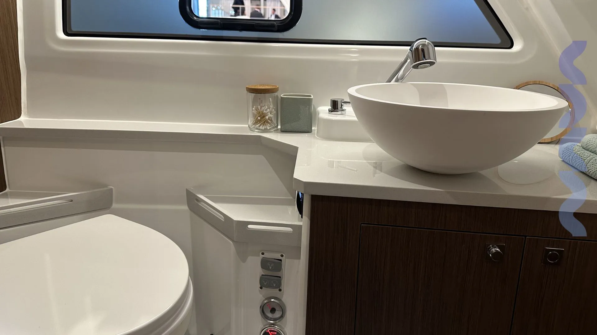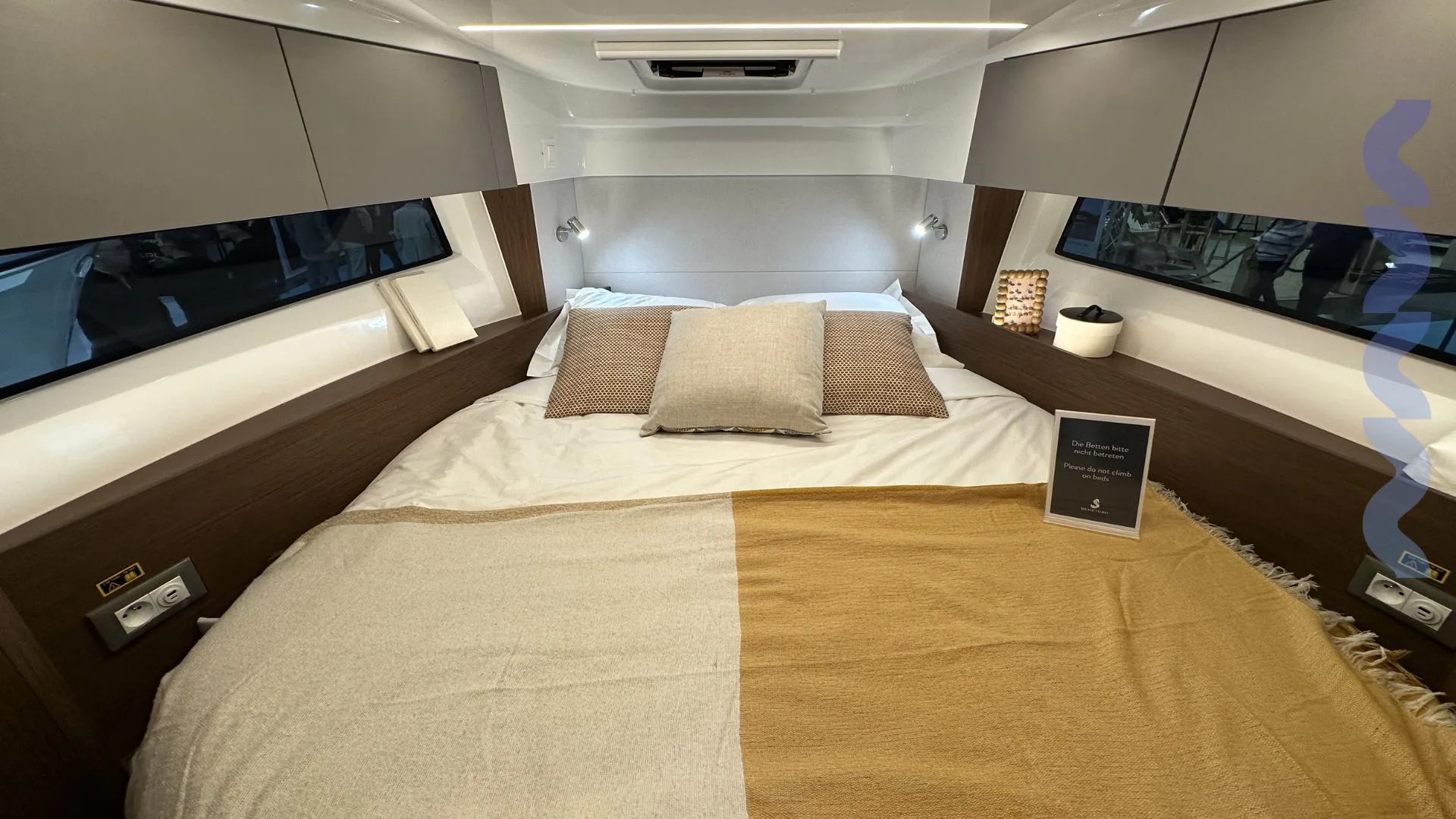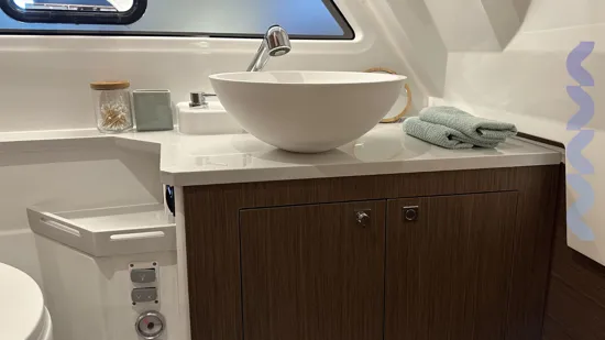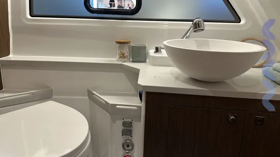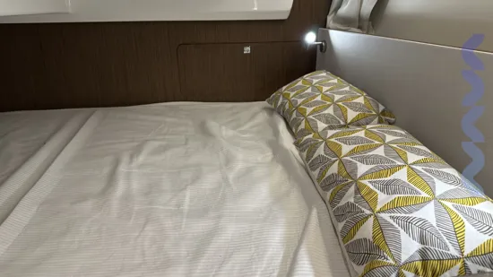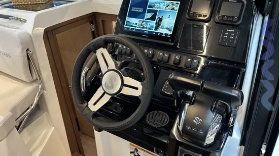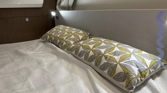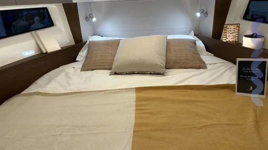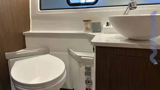 Additional features include a bow thruster, mooring and anchoring kit, removable cockpit table with extra seat, extended stemhead with swimming ladder, dock water inlet, electric fresh water toilet, Zipwake automatic trim system, linedeck on the forward deck.