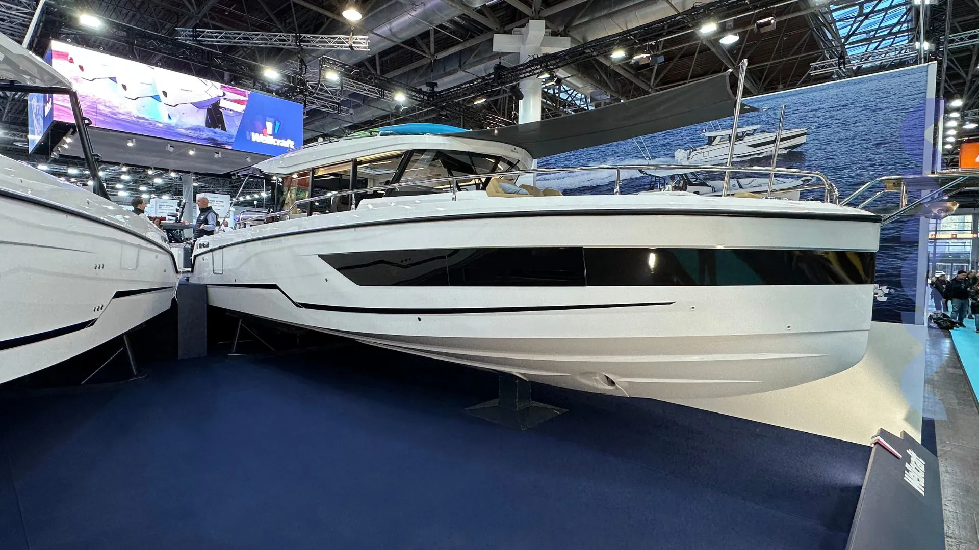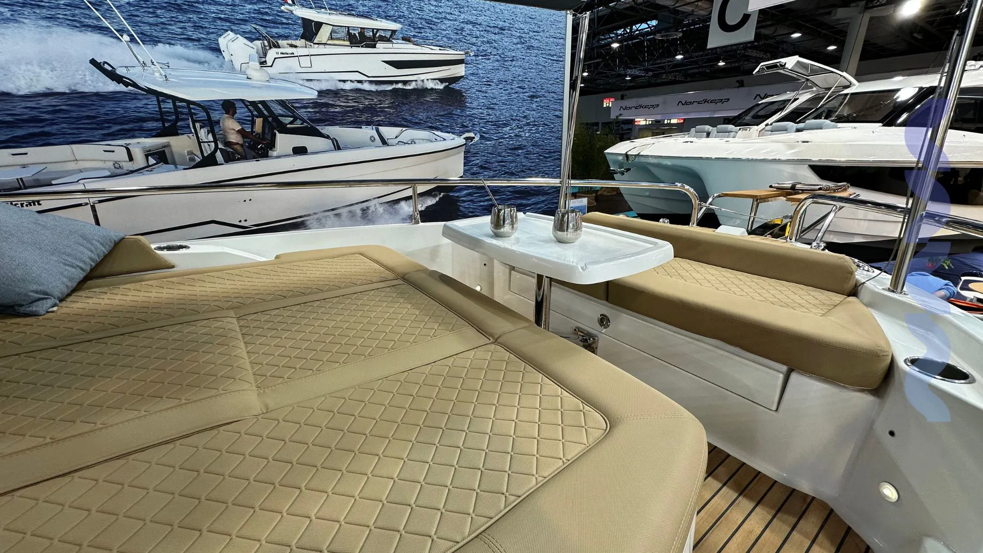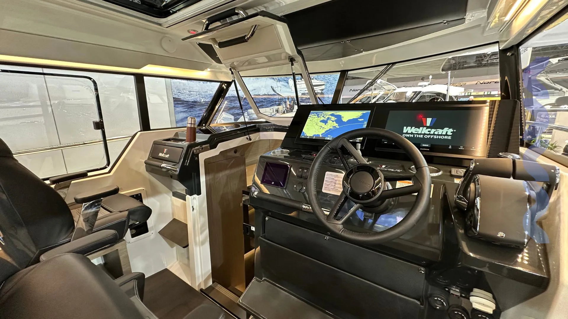 The Premiere Trim Level includes premium touches such as electric wheelhouse hatches, windlass with remote and chain counter, trim flaps, ambient interior lights, and full electronic packs for seamless navigation.