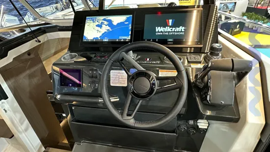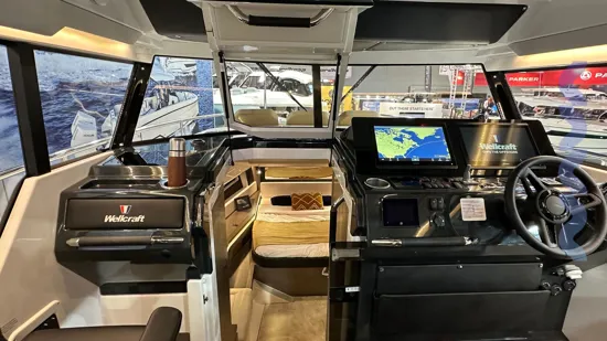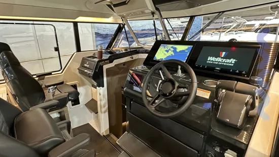 The 2025 Wellcraft 38 Explorer is a versatile offshore cruiser designed for those who demand style, power, and functionality. Driven by three Mercury 350 HP V10 XL engines with joystick control, it delivers smooth handling, responsive performance, and confidence on every journey.