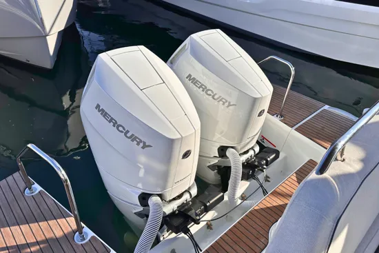 Powered by twin Mercury V10 Verado 350 hp engines, the GT 35 reaches top speeds of over 41 knots and features joystick control for effortless docking and maneuvering.