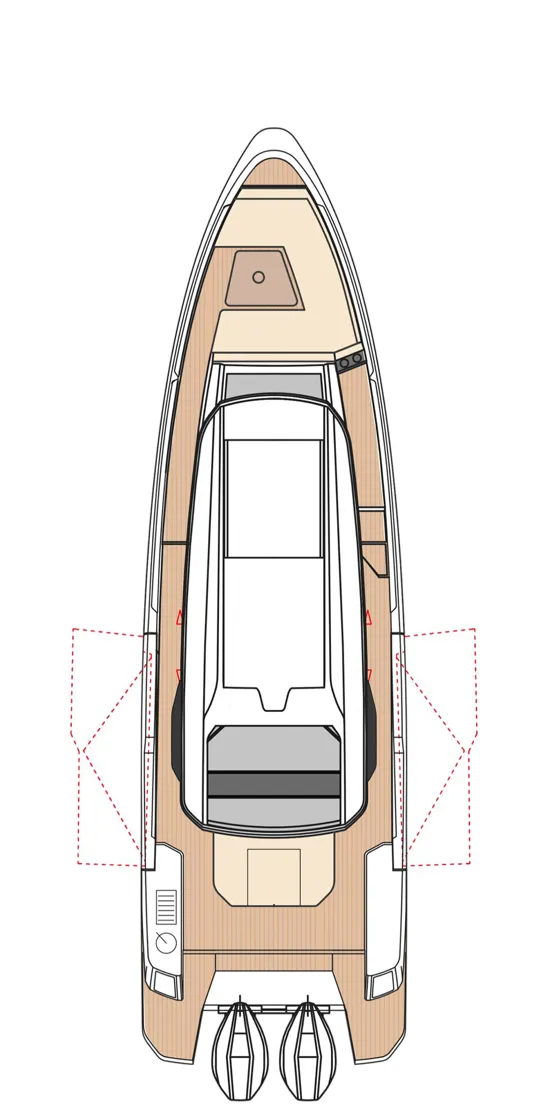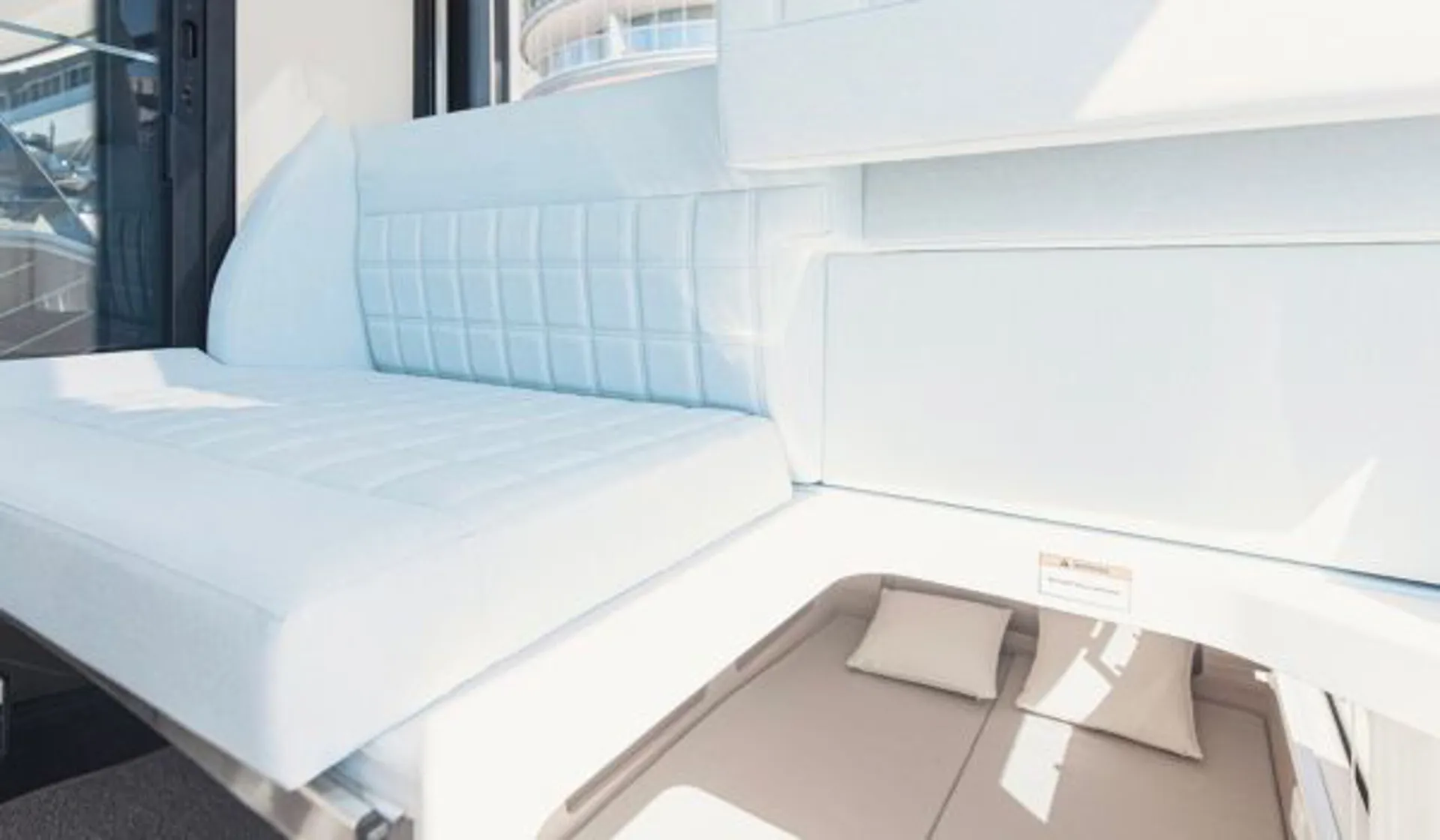 Spacious Walkaround Layout: Expansive side terraces, bow sofa, and aft sunbed give room to relax and entertain.