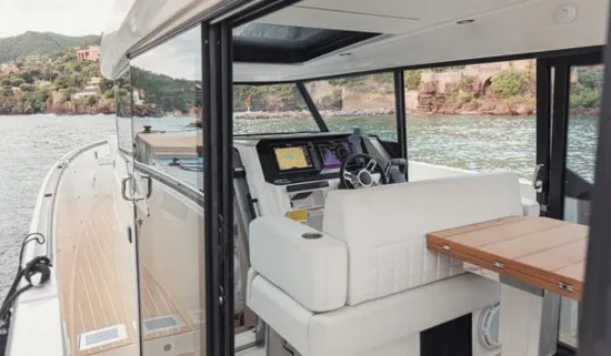 Step aboard the Saxdor 340 GTWA – where all-weather performance meets luxury and style. Designed for those who demand versatility, this walkaround offers open-air freedom with weatherproof comfort.