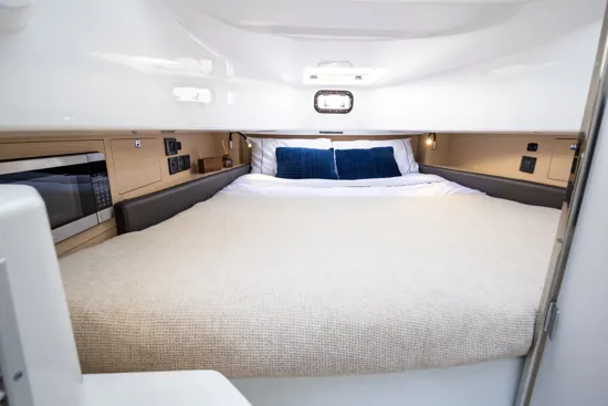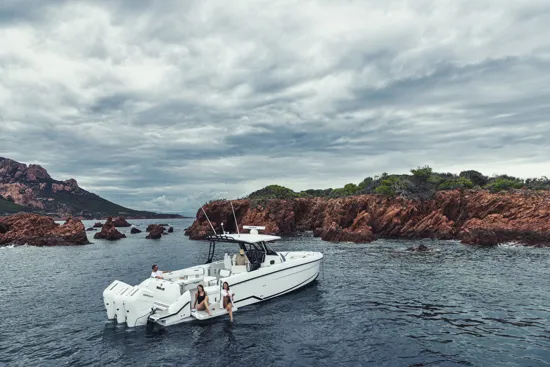 This model truly stands out for its wide range of optional equipment, allowing every owner to tailor the boat to their lifestyle — from engine configurations with twin or triple Mercury or Yamaha power options, to an impressive selection of premium upholstery, advanced navigation systems, high-end JL/Fusion audio, fishing and anchoring packages, and comfort upgrades such as air conditioning, Seakeeper stabilizer, or lithium battery systems.