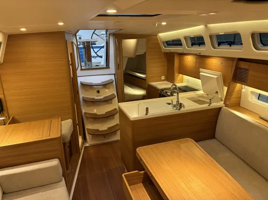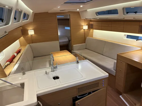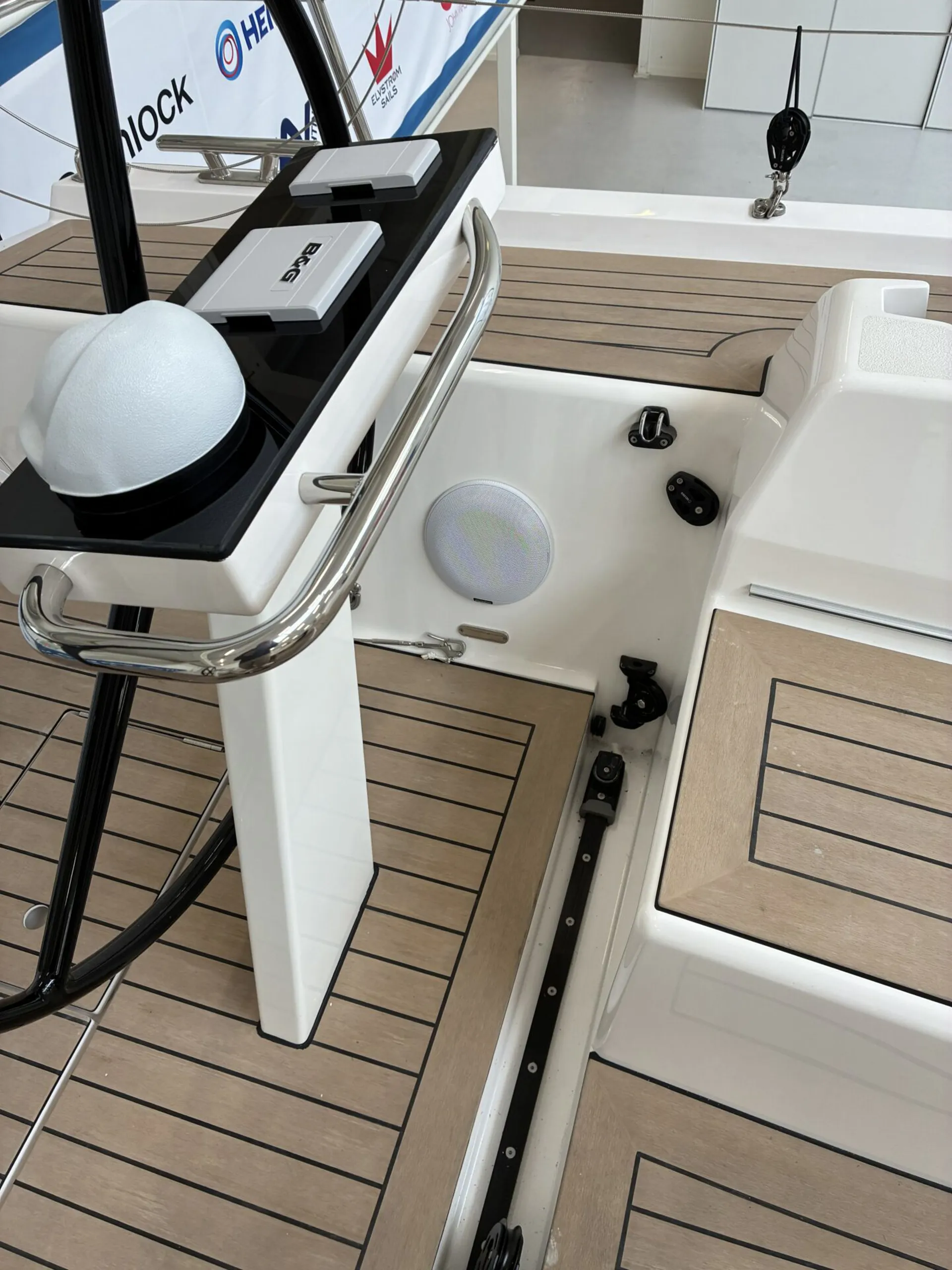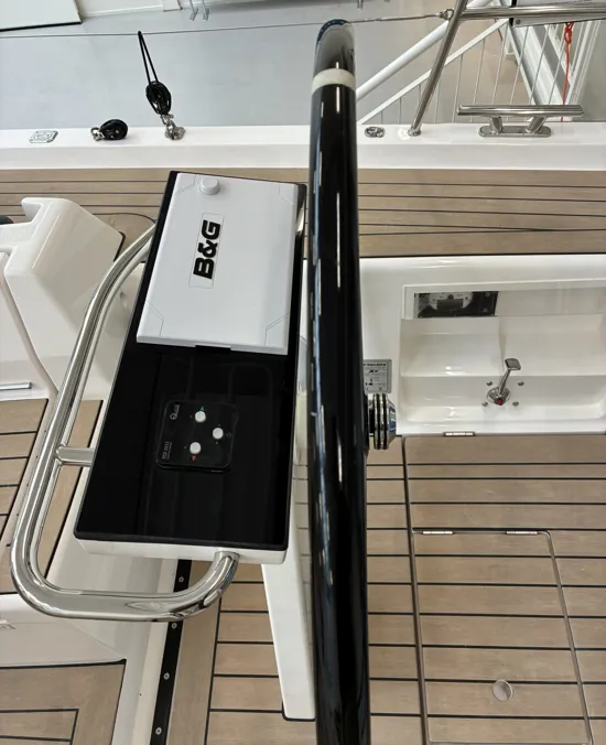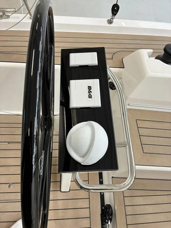 Enjoy every detail: Flexiteek decks, sprayhood and cockpit cushions, and full North Sails 3Di wardrobe – full-batten mainsail, self-tacking furling jib, and G2 gennaker.