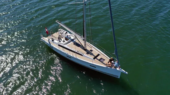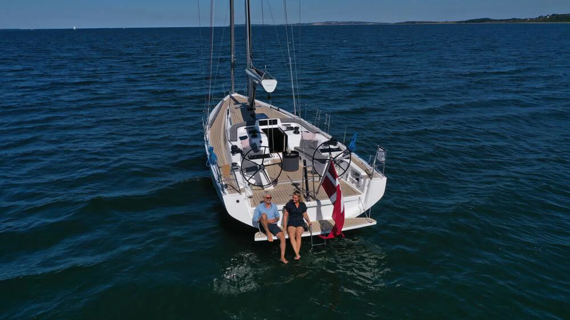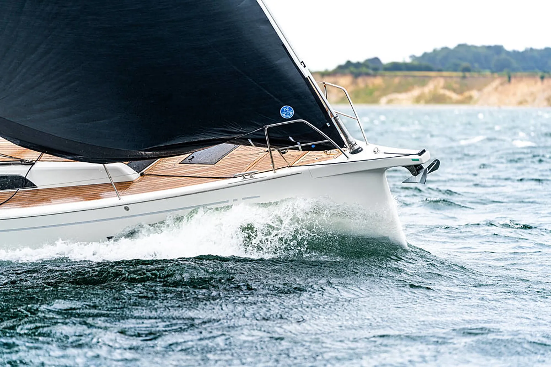 Experience the X4³, where Danish design meets high-performance sailing. The wider transom and lifted soft chines provide remarkable form stability, reduced wake, and smooth motion when heeled. At the helm, enjoy a direct, responsive feel with updated rudders shared across the Pure X range — steering is a pure pleasure.